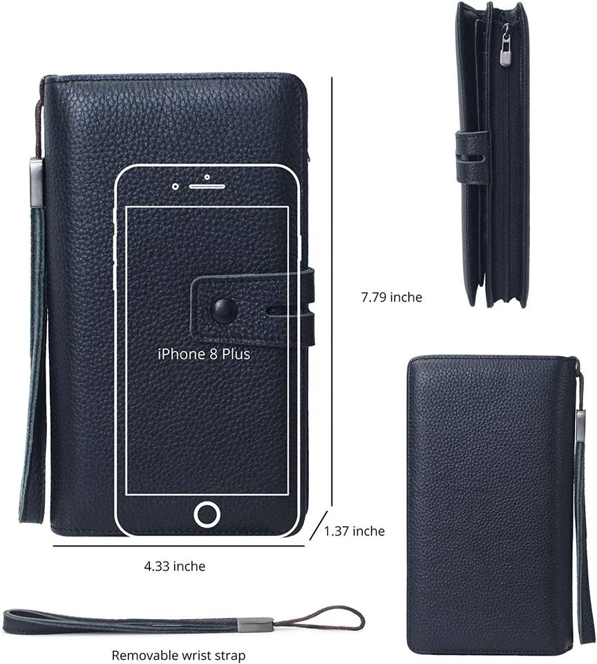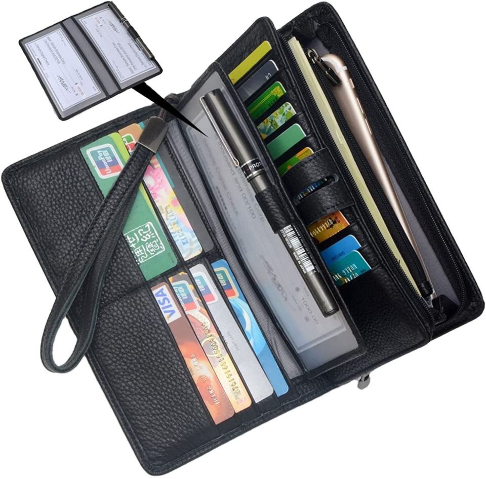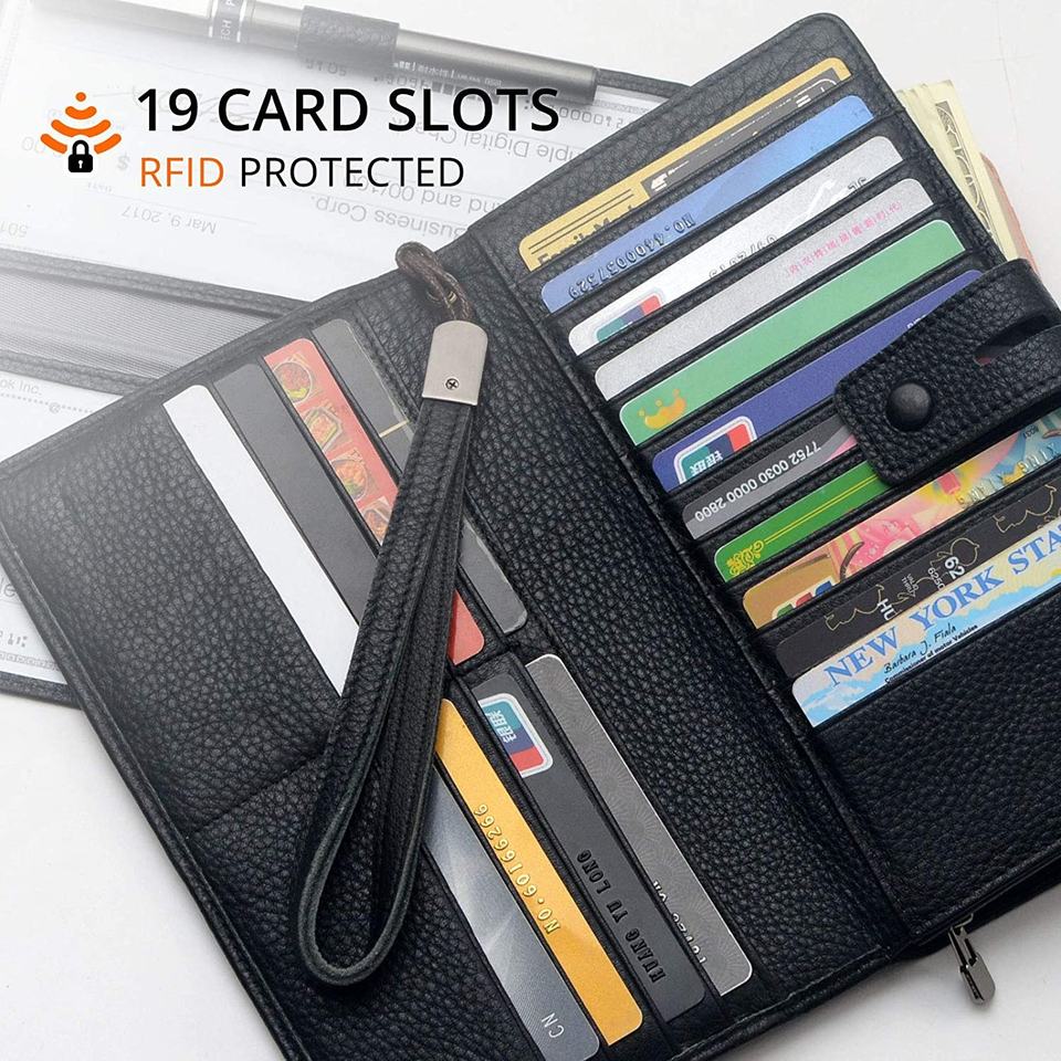 Grand porte-monnaie en cuir Rfid avec 19 emplacements pour cartes et pochette à monnaie zippée