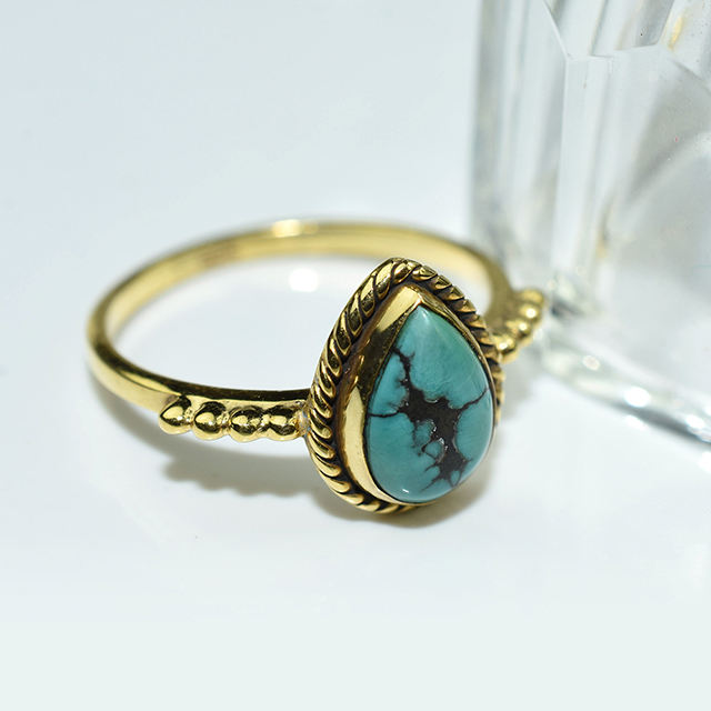 Bagues en argent Sterling 925 Turquoise vert parfait en forme de poire, bijoux en argent avec pierres précieuses 925 en ligne
