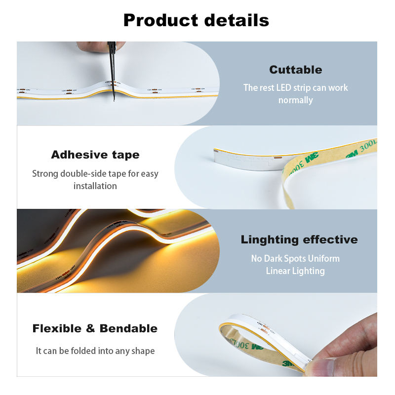 Bande LED COB à émission latérale monocouleur haute densité 480 LED/m, 3000K-6500K, certifiée UL CE pour la décoration intérieure