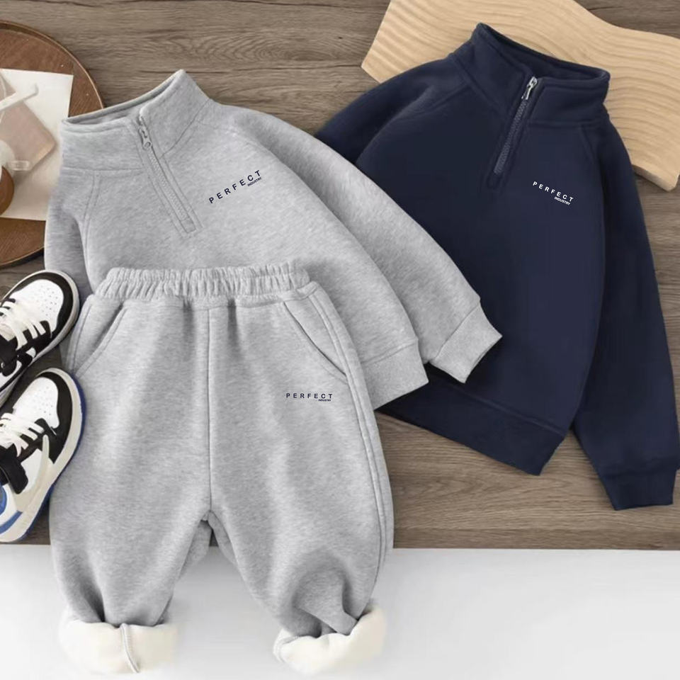 Ensemble de survêtement personnalisé pour l'industrie, sweat-shirt à capuche zippé et jogging, garçons et filles, motif uni, hiver, coton/polaire