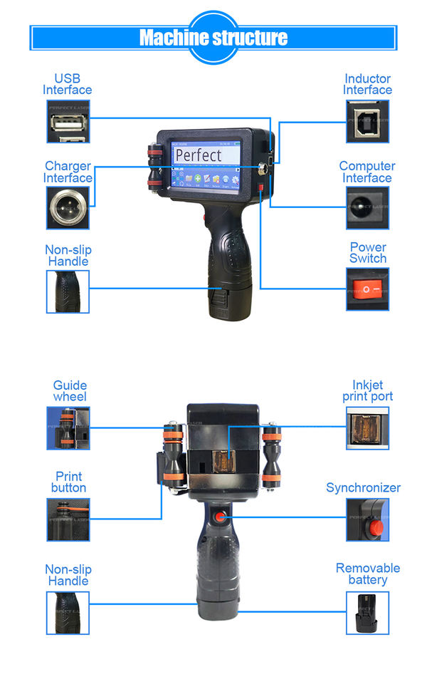 Imprimantes à jet d'encre portables et manuelles Perfect Laser-1-12,7 mm pour le bois, les cartons, les pierres, les tuyaux, les câbles, les métaux, les plastiques