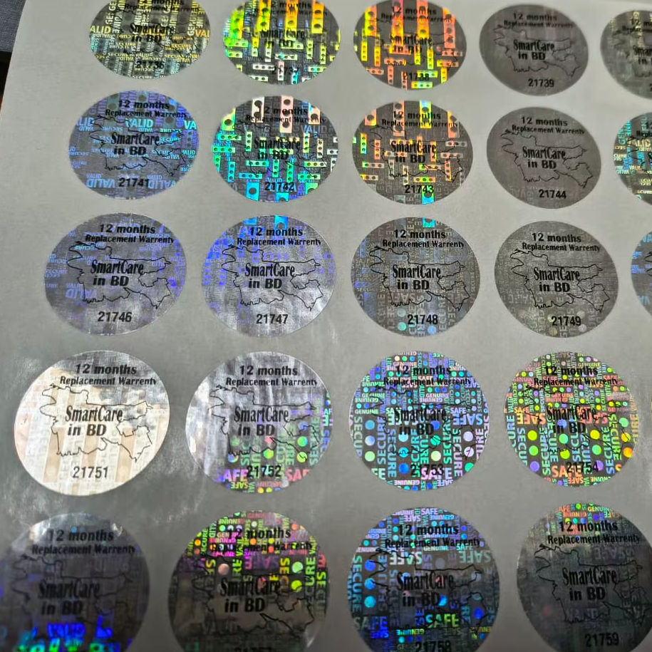 Papier adhésif holographique original parfait, étiquettes de logo de marque miniatures imprimées sur mesure pour l'emballage, étiquette de protection de la marque