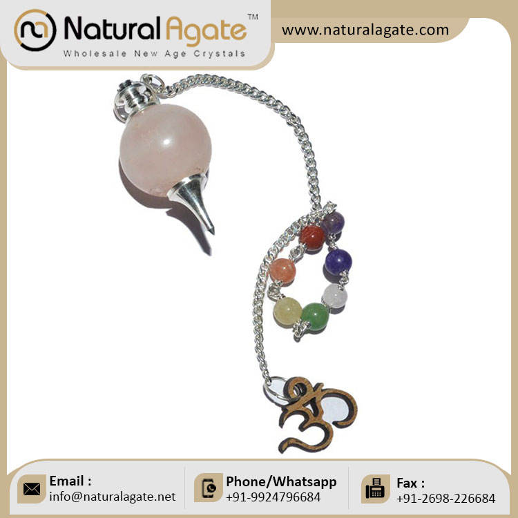 Perfect Witch supplies Semi-Precious Stone Crafts Buy Rose Quartz Ball Pendulums with Chakra Om Chain