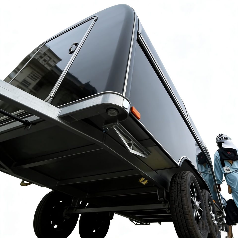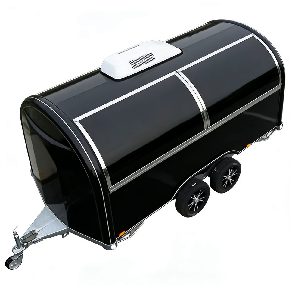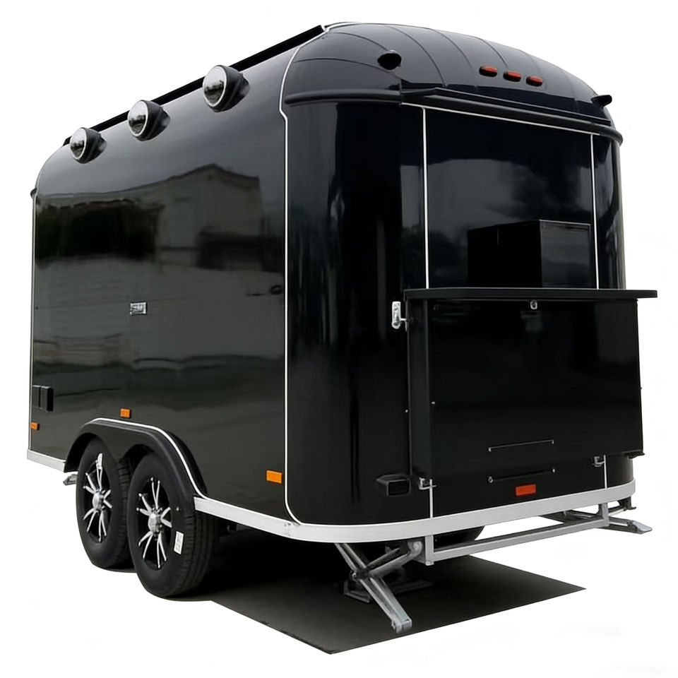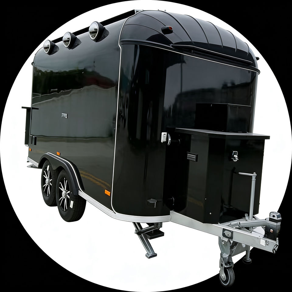 Remorque dôme noire sécurisée pour stockage de nuit, avec trappe de service verrouillable pour la protection des équipements de crème glacée, en acier inoxydable, 13 pieds
