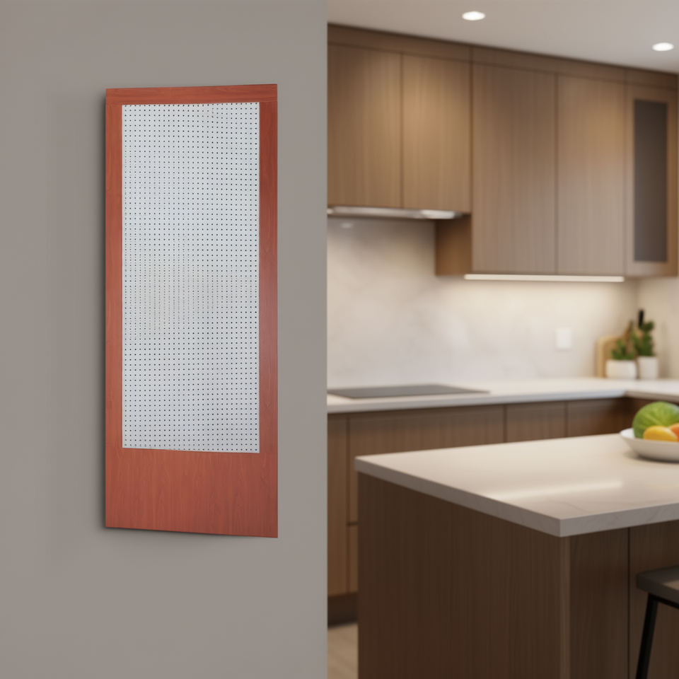 Panneau arrière perforé, hauteur 220 cm, largeur 105 cm, couleur bois de cerisier, quincaillerie de cuisine