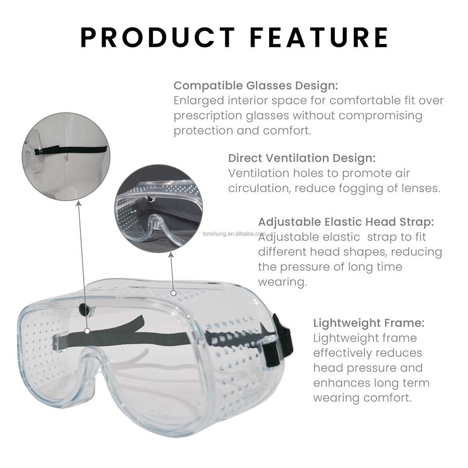 ANSI Z87+ Certified Anti-Fog over the glasses wide vision safety goggle for protect against chemical splashes