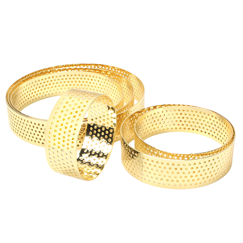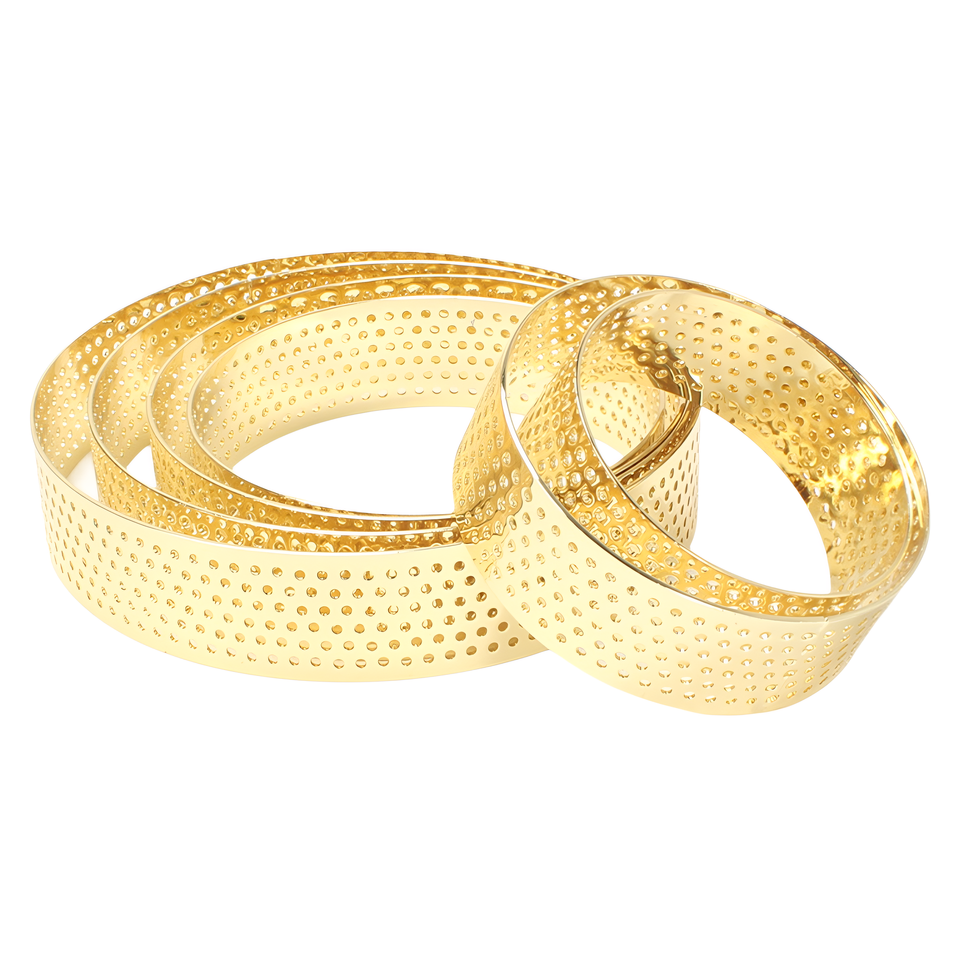 Moule à tarte rond en acier inoxydable perforé doré / Anneau à tarte