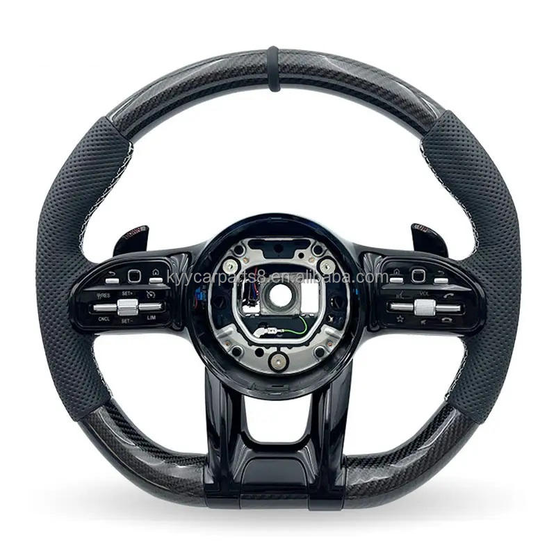 Volant personnalisé en cuir perforé et fibre de carbone pour Mercedes Benz A45 AMG C43 63 AMG CLA 45 CLS 63 AMG 2015 avec écran LED