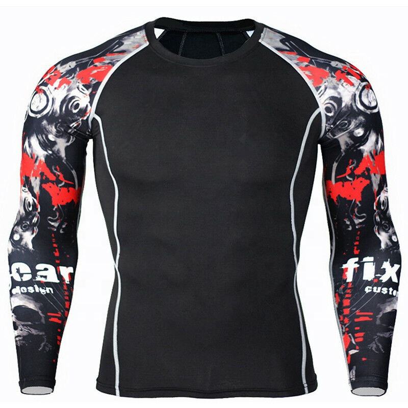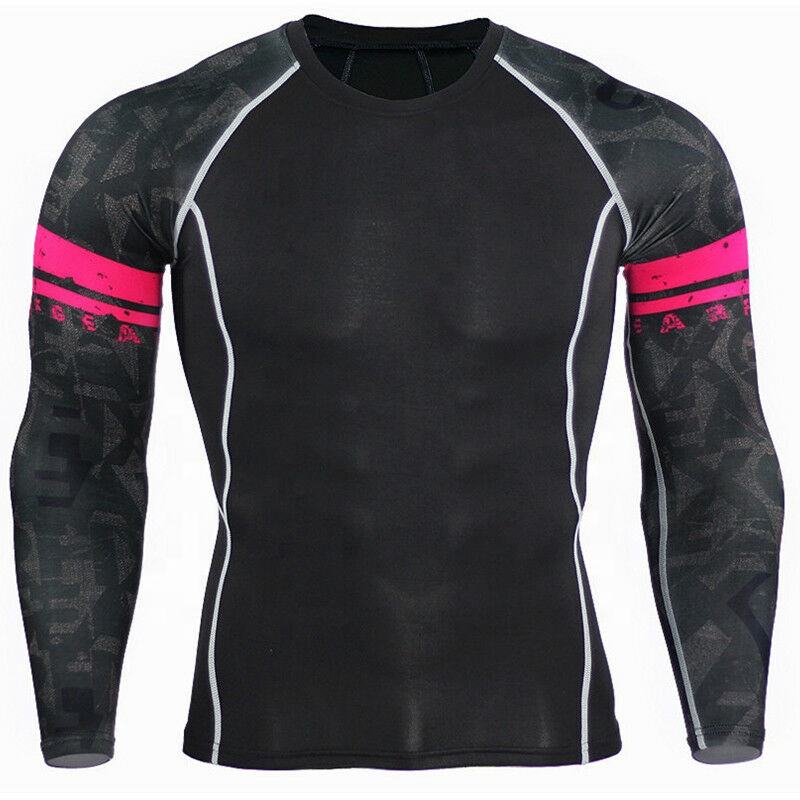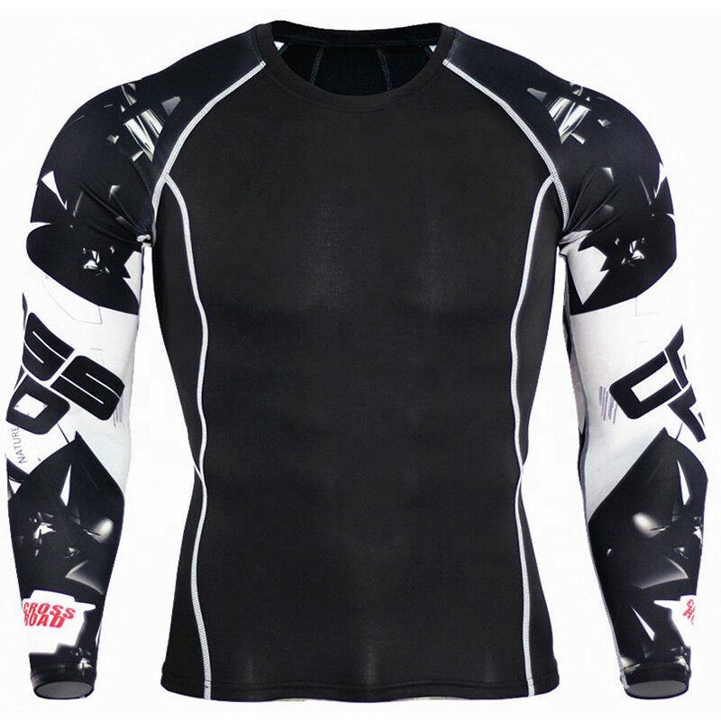 Haut de sport à compression performante, coupe ajustée, col rond, manches longues, pour homme, noir, en spandex, séchage rapide et anti-plis, PIHA SPORTS