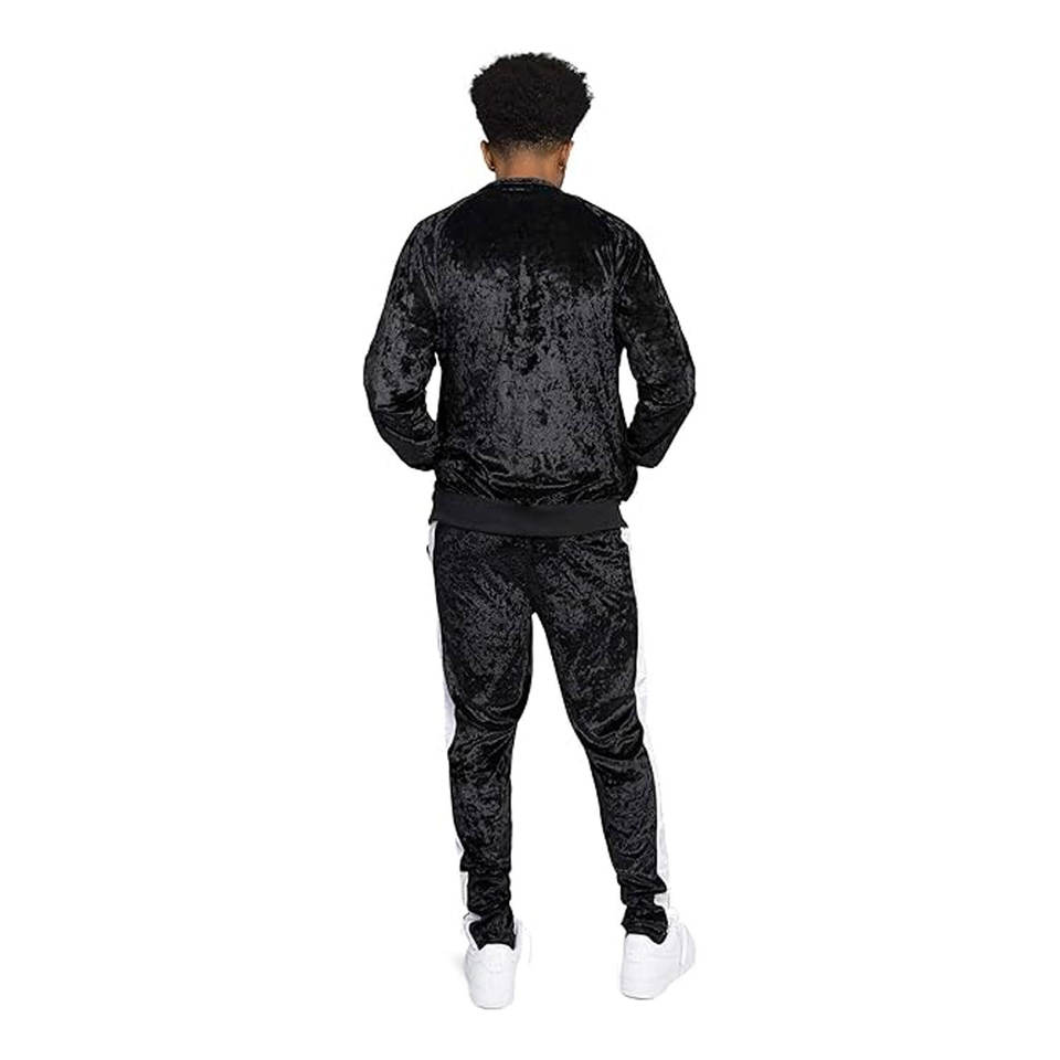 Ensemble de survêtement pour homme Performance Veste athlétique à fermeture éclair intégrale avec pantalon de jogging à cordon de serrage Conçu pour une mobilité flexible Velours noir