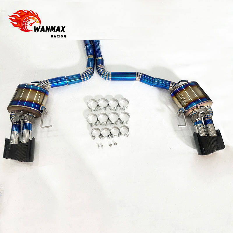 Système d'échappement en titane haute performance pour Audi RS6/RS7 C8 4.0T Finition bleu brûlé Cat-Back Sans embouts Améliore l'accélérateur et le son