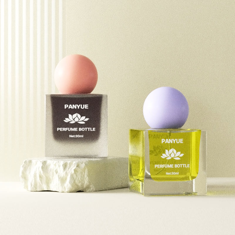 Emballage de parfum Bouchon à bille vide 30ml Bouteille en verre de parfum de forme carrée