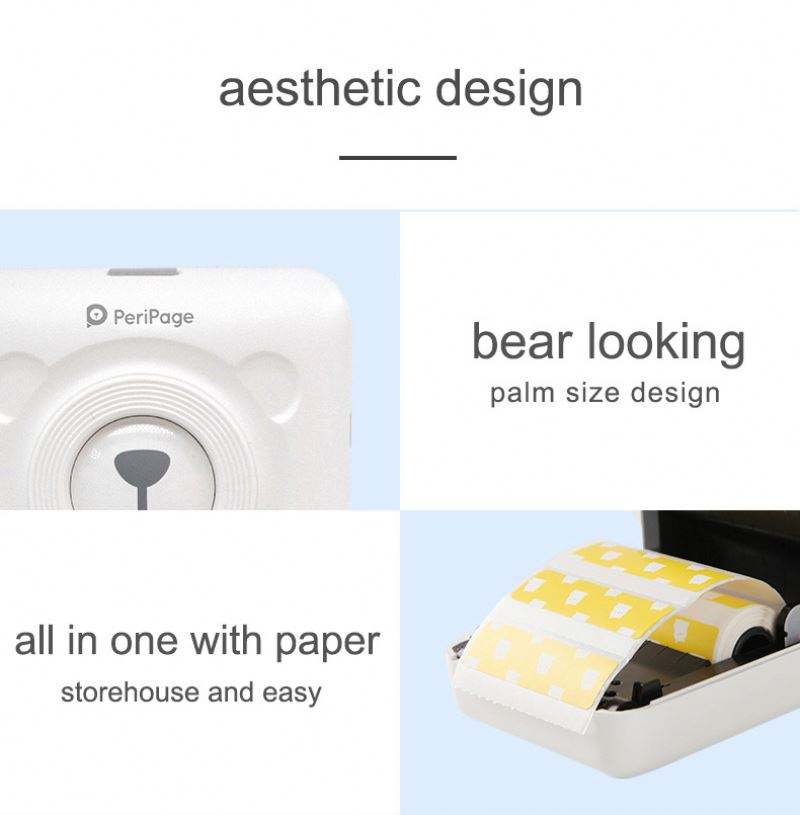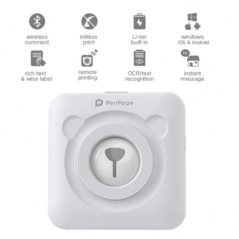 PeriPage A6 Mini Imprimante Thermique Portable Papier Photo Imprimante Thermique de Poche 58mm Impression Sans Fil BT Android Imprimantes