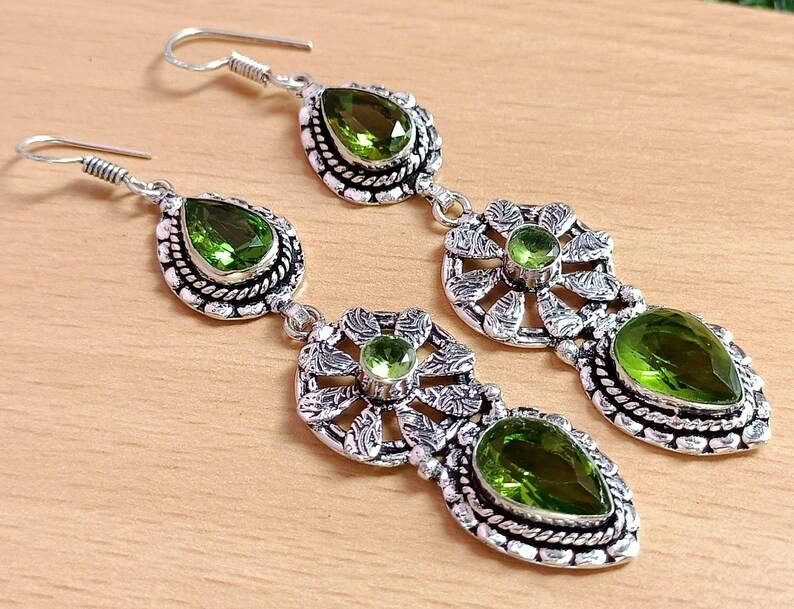 Peridot Stone Handmade Silver Plated Earrings Natural Gemstone Jewelry Boho Fashion Accessory For Women
