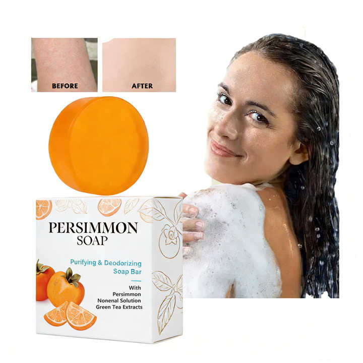 Savon au kaki purifiant et déodorant pour le corps, naturel, doux, aux extraits de thé vert, adapté à tous les types de peau