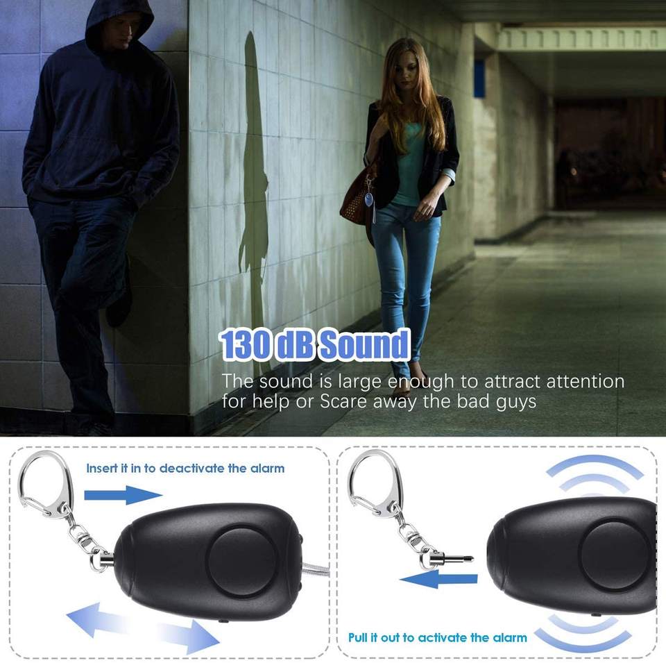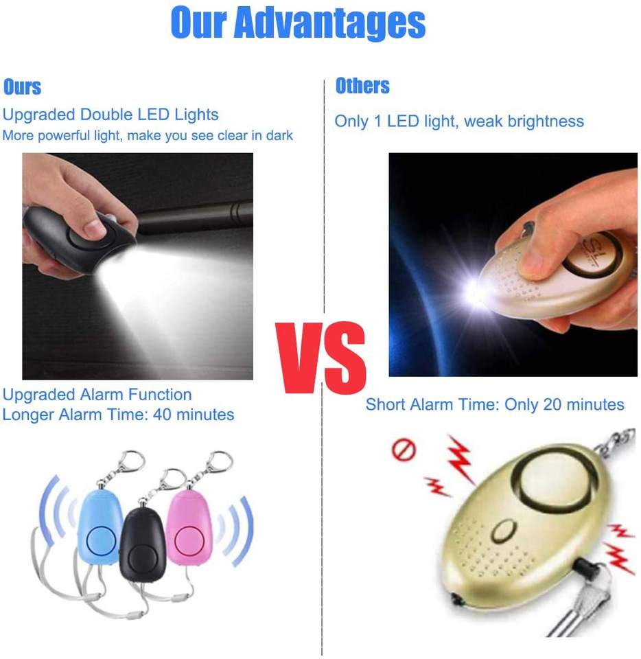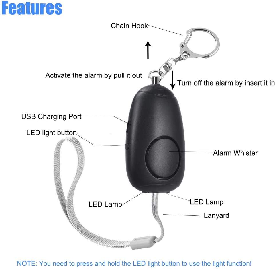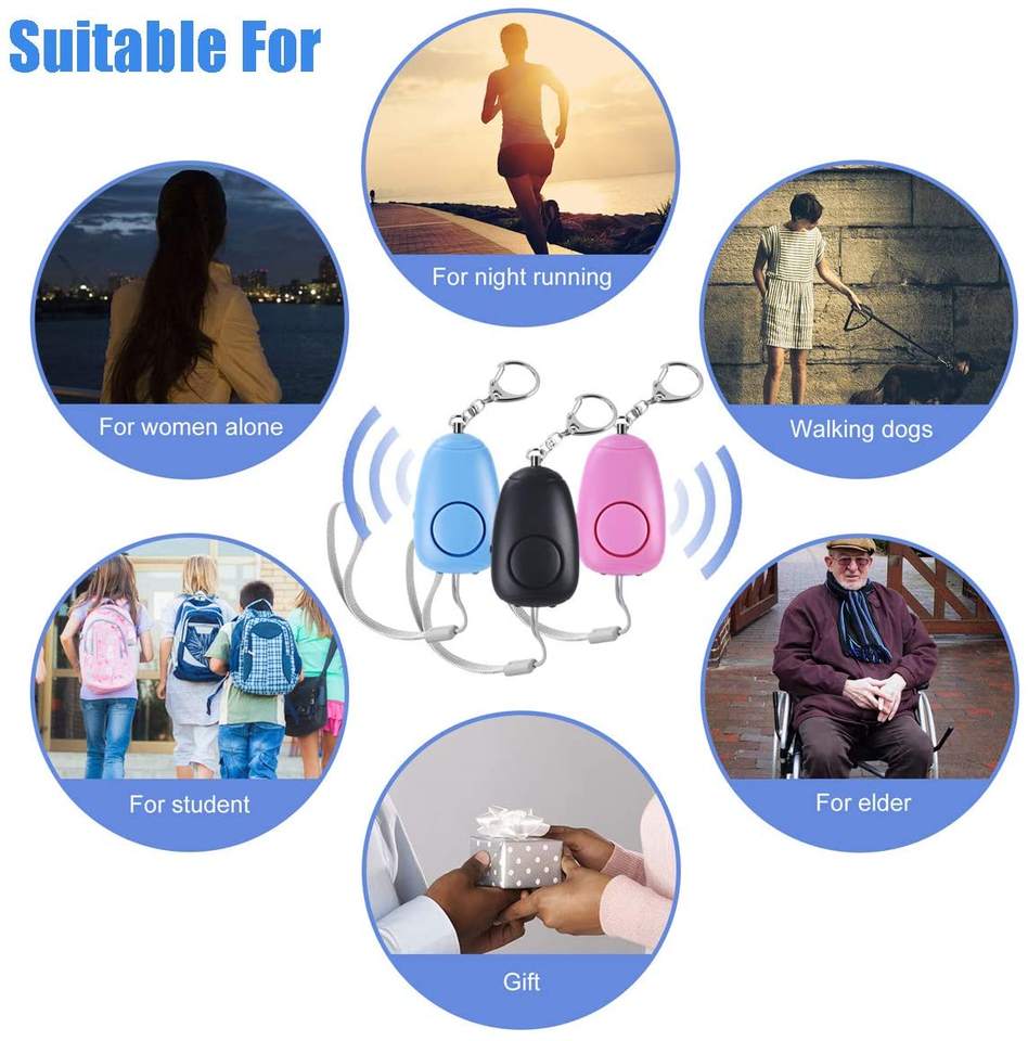 Alarmes personnelles rechargeables par USB, 130 dB, alarme de sécurité Safesound, porte-clés avec lumières LED, alarmes personnelles d'urgence 140 dB