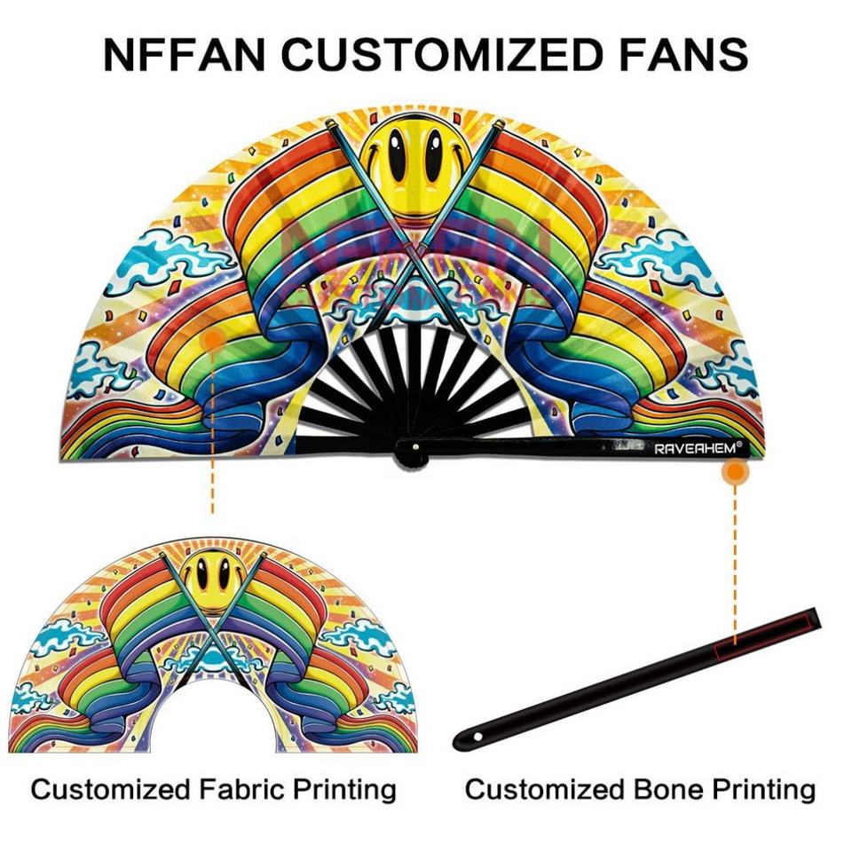 Gros ventilateurs personnels pliants en bambou Rave avec tissu anti-UV et son Clack imprimé sur mesure