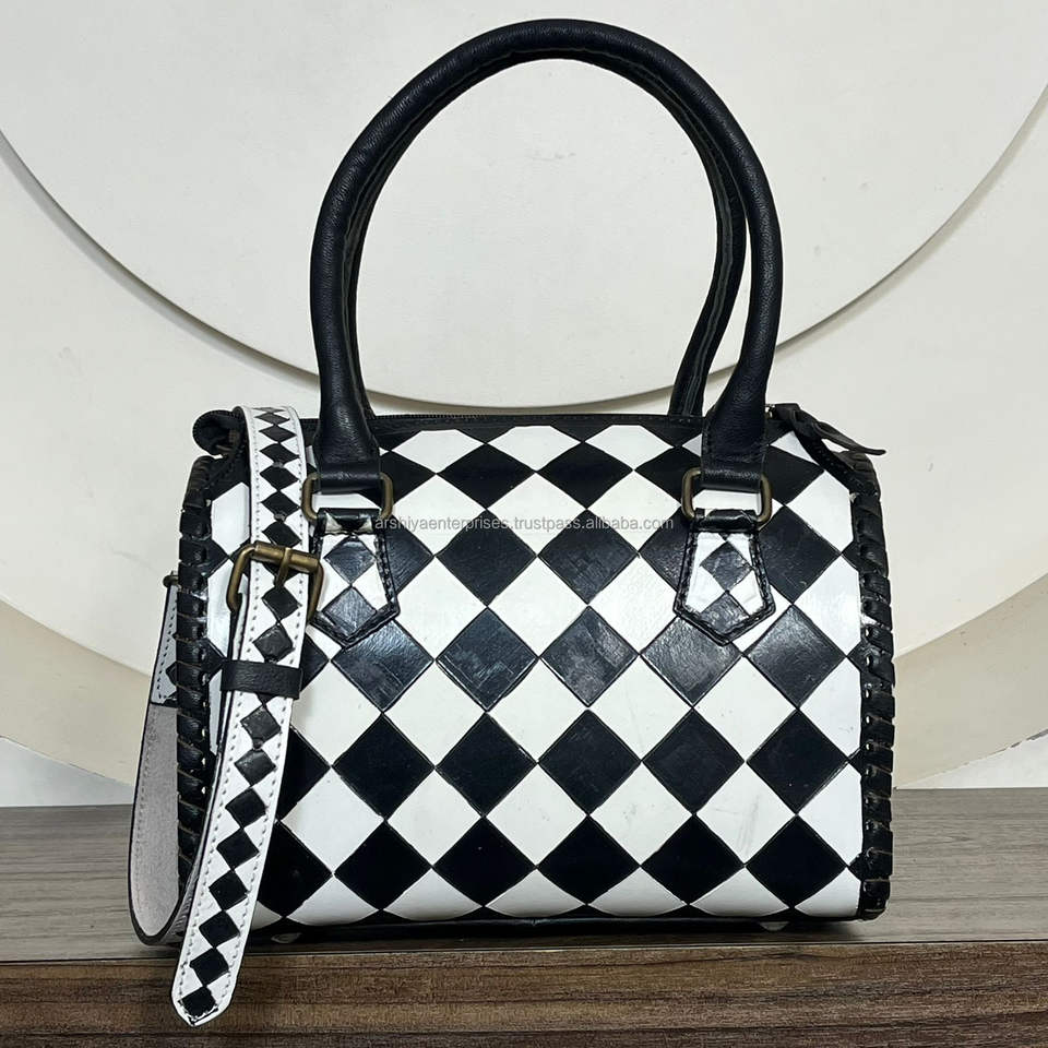 Nom du produit:Grand sac Speedy en cuir à carreaux travaillé à la main