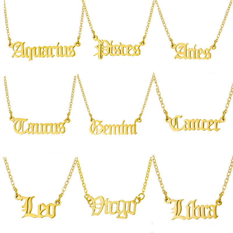 Colliers d'horoscope d'anniversaire personnalisés en acier inoxydable plaqué or 12 colliers du zodiaque pour femmes