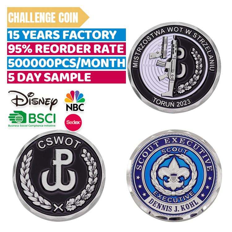 Pièce de défi personnalisée en métal 3D, or, argent, laiton, cuivre, émail, 28 mm, bord coupé, imprimée en typographie, commémorative