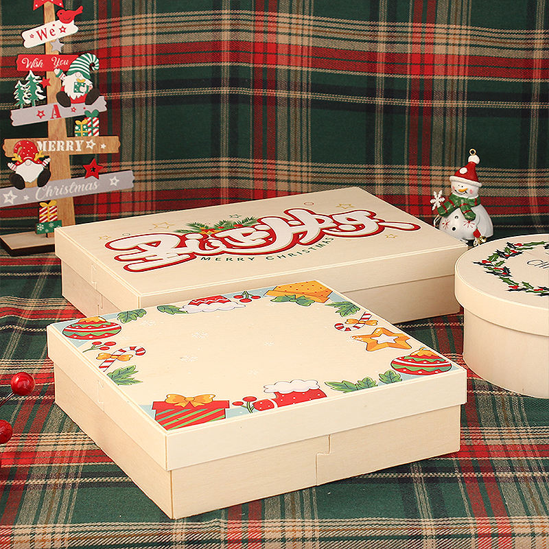 Boîte de Noël personnalisée offre spéciale emballage en bois plateau de nourriture végétarien avec couvercle récipient de nourriture à usage unique