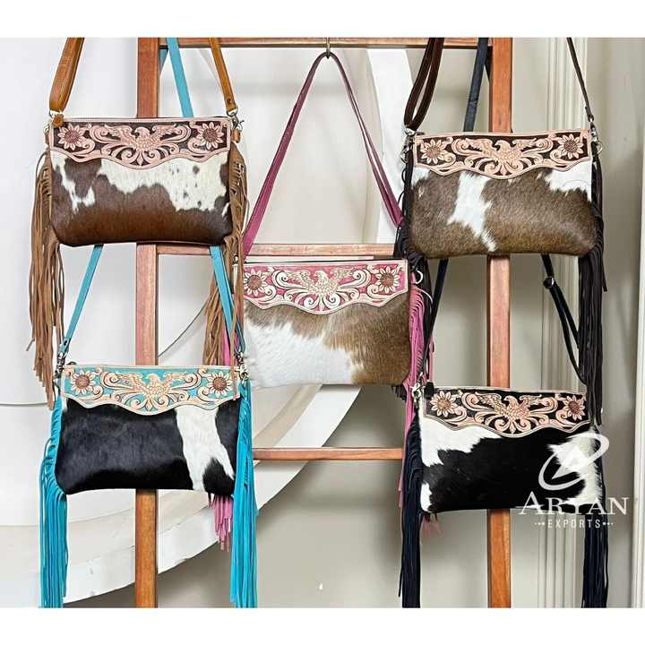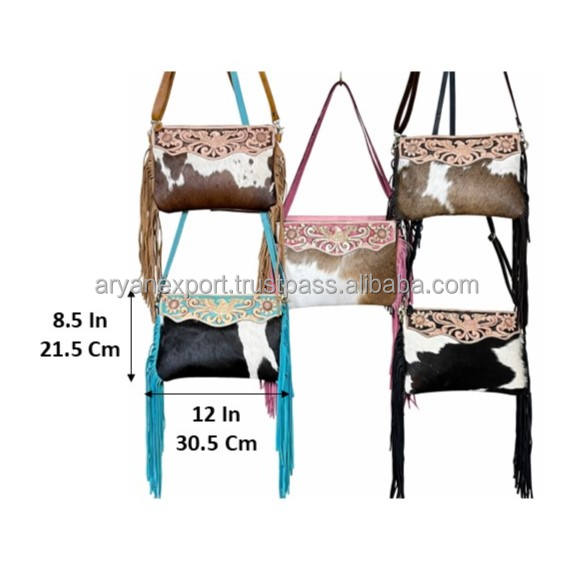 Sacs bandoulière à franges en cuir de vachette travaillé à la main