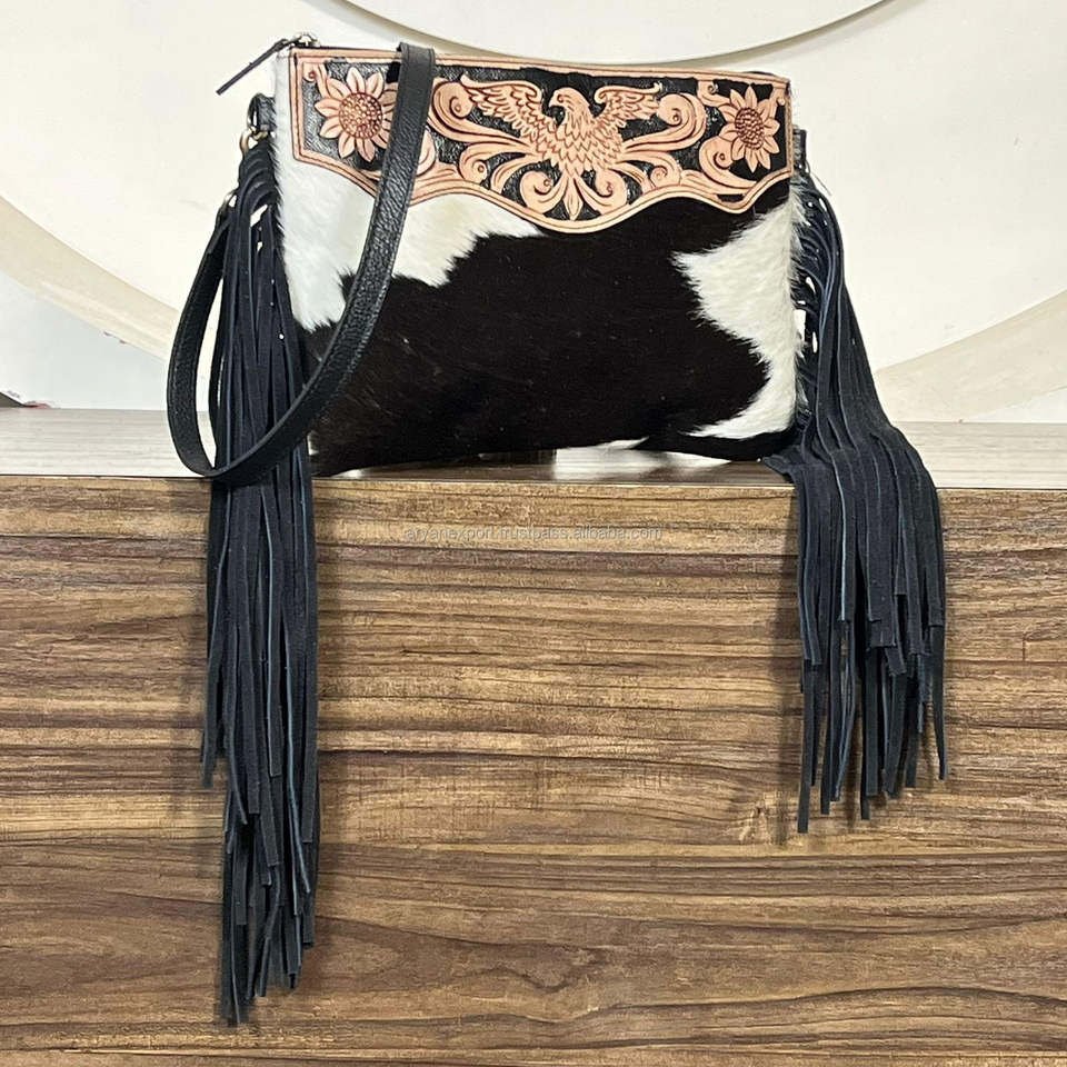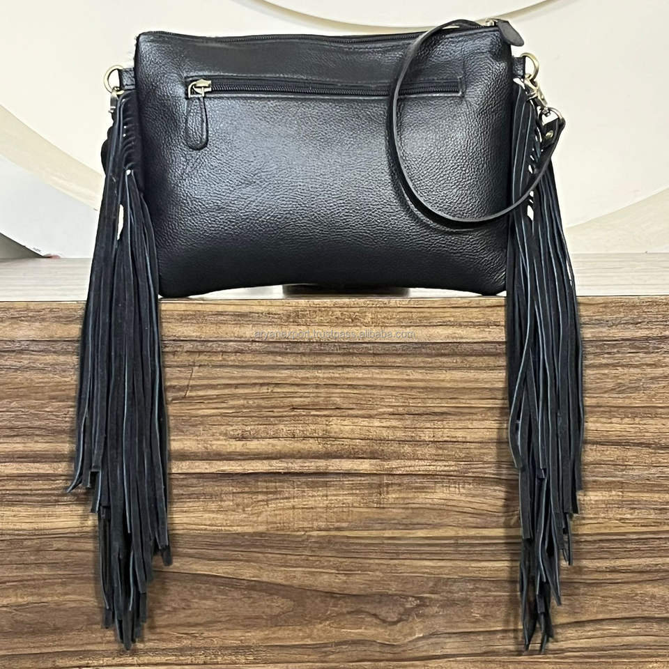 Nom du produit:Sacs bandoulière à franges en cuir de vachette travaillé à la main