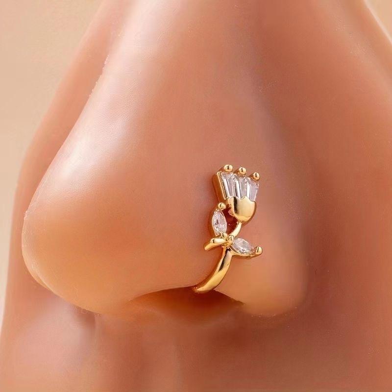 Charme de personnalité sans piercing cuivre incrusté de zircon pince-nez en forme de U faux anneau de nez ongle de nez femme sans piercing bijoux