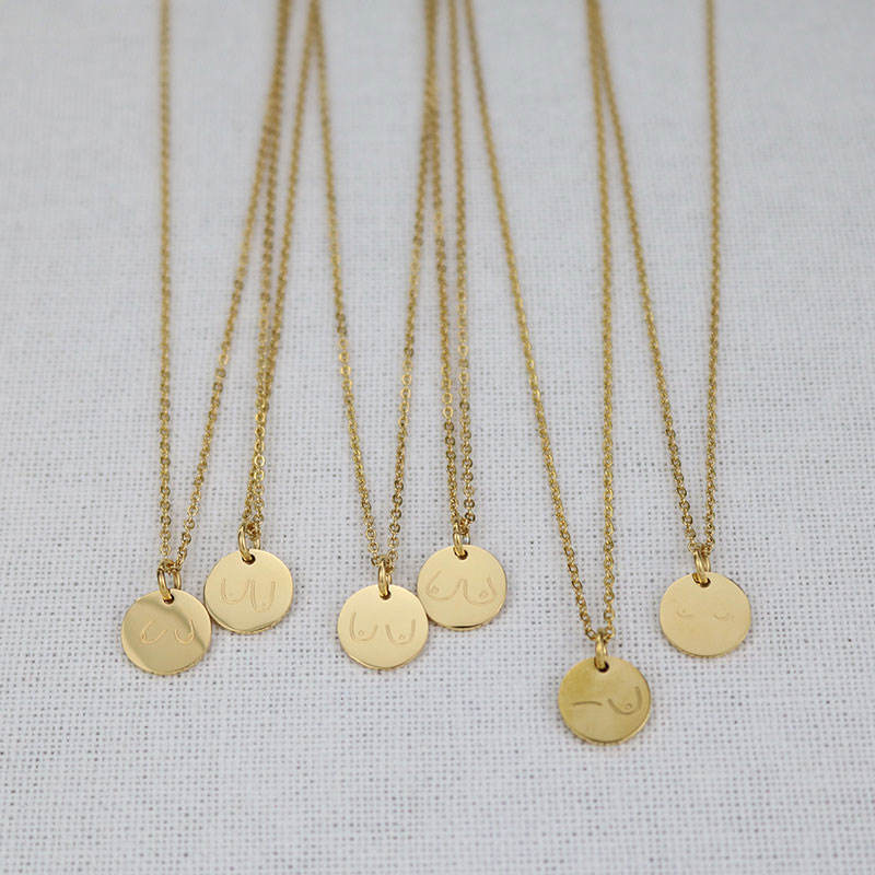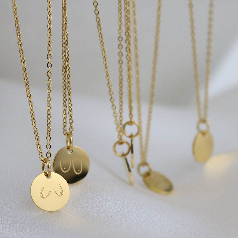 Collier personnalisé anti-ternissement en or 18 carats en acier inoxydable véritable avec pendentif féminisme en forme de poitrine pour femme
