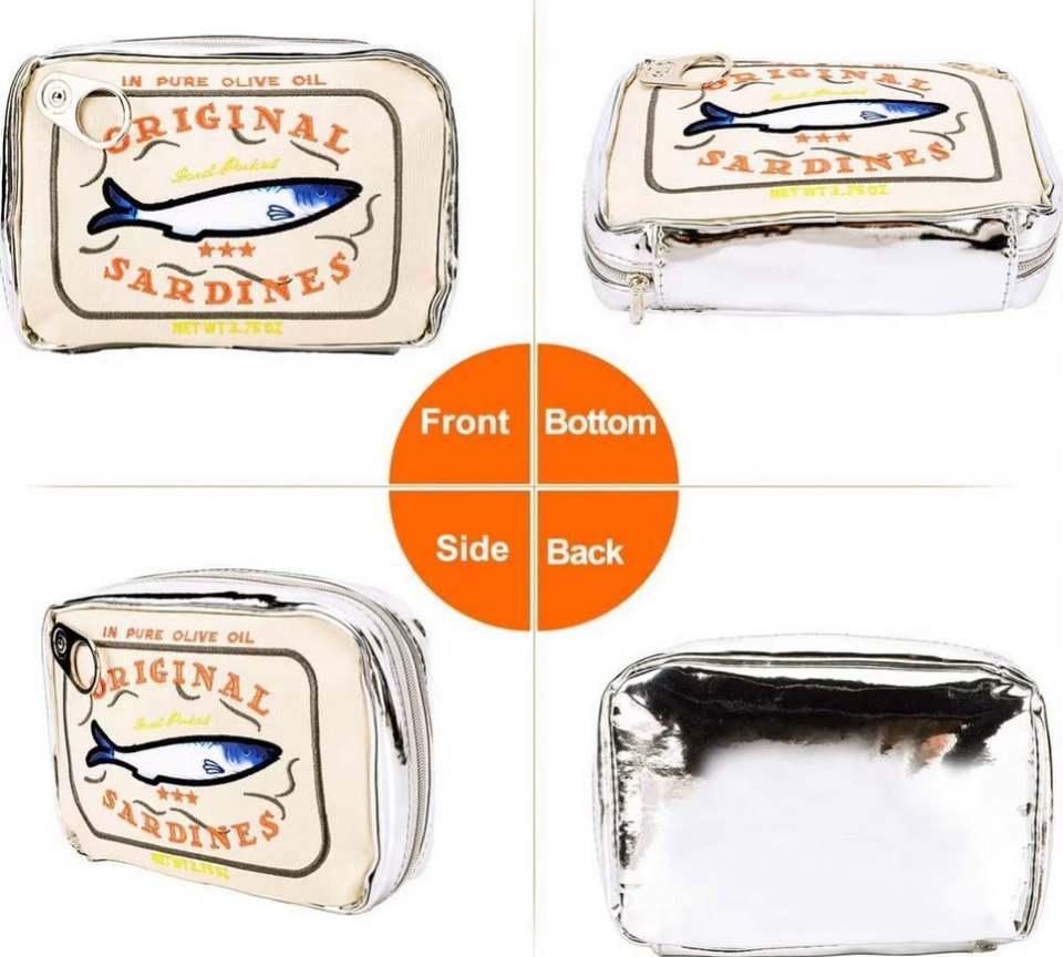 Pochette de maquillage portable personnalisée avec logo brodé, motif sardine, fermeture éclair, en cuir PU, sac de rangement cosmétique