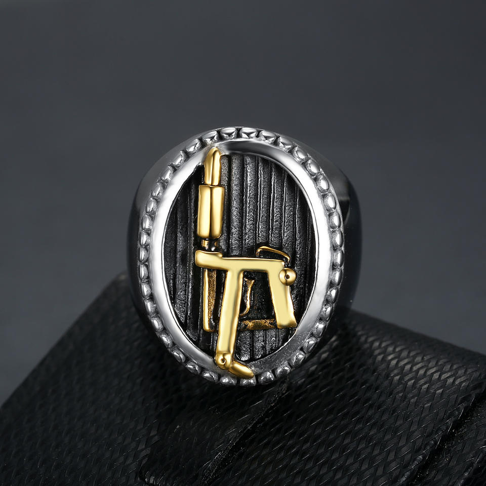 Personnalité nouvelle machine à tatouer rétro logo anneau bicolore en acier inoxydable bijoux pour hommes en gros