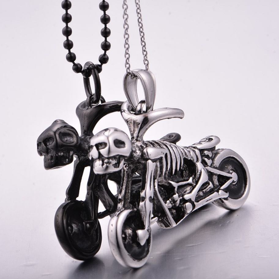 Collier pour homme en acier inoxydable, style punk gothique, avec crâne et locomotive, pour motard