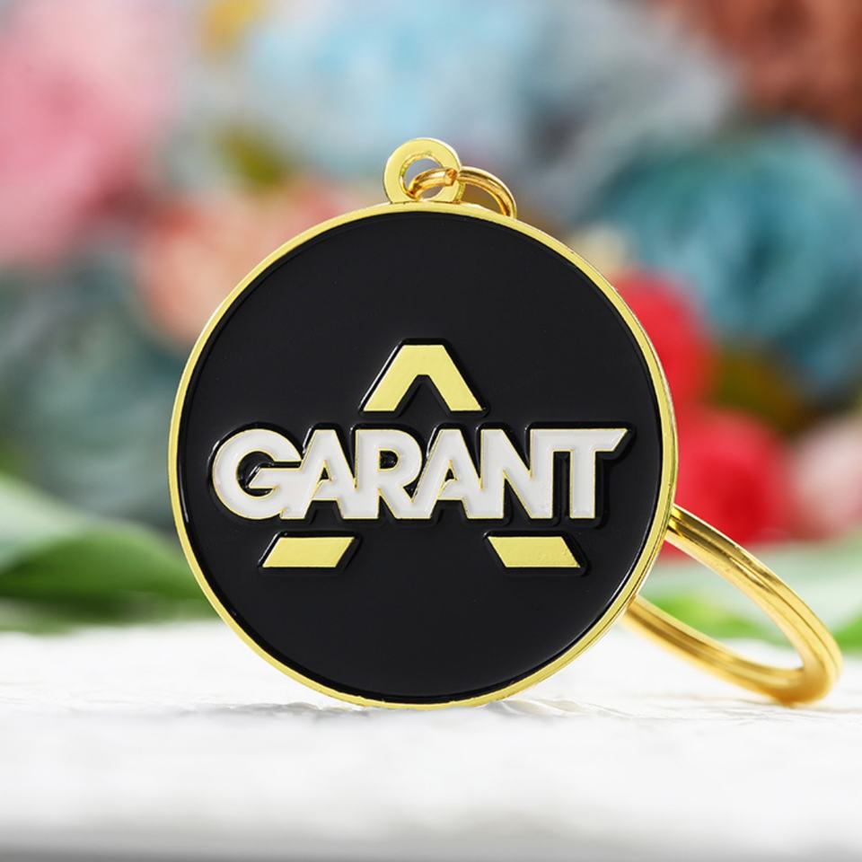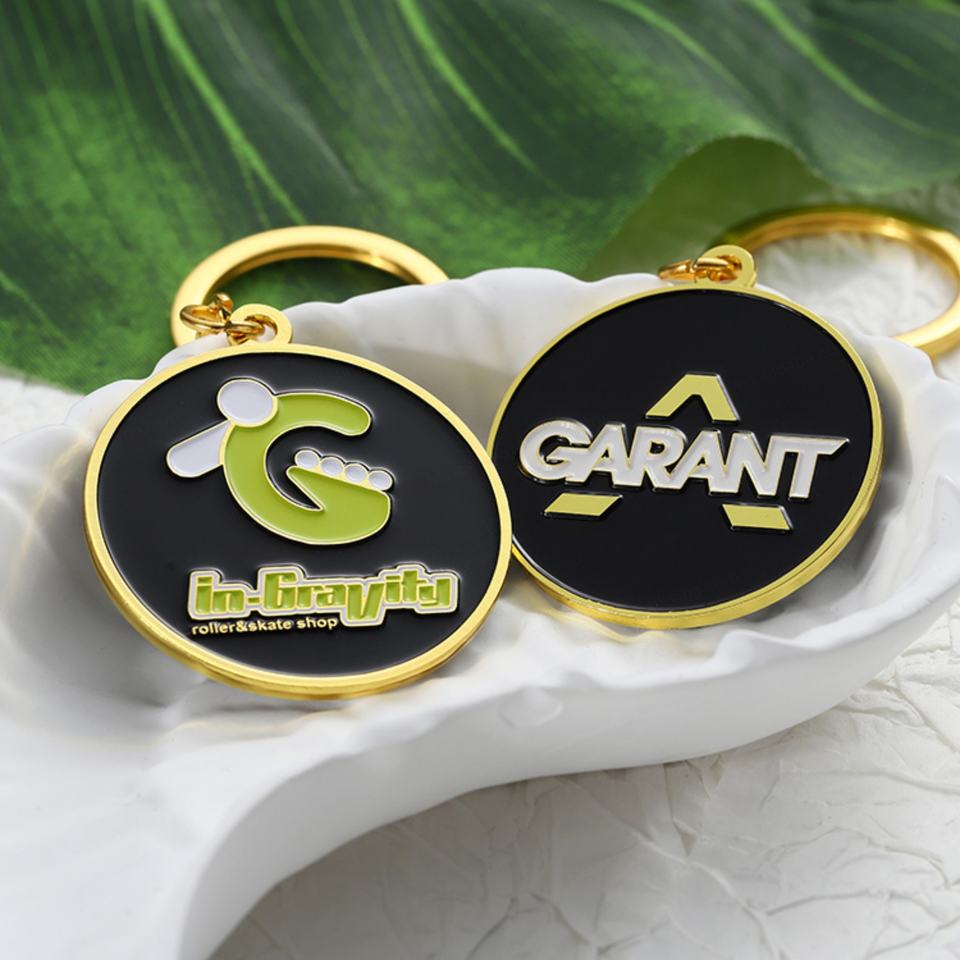 Porte-clés mousqueton vintage en émail personnalisé avec logo, forme irrégulière, en métal plaqué or, double face, pour marque commerciale, en zinc