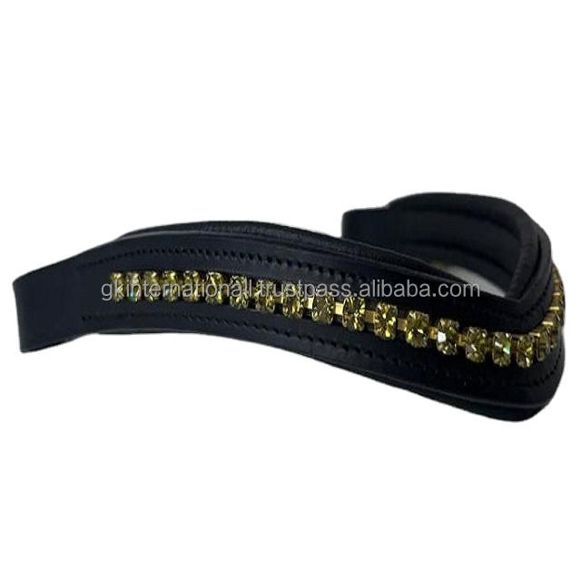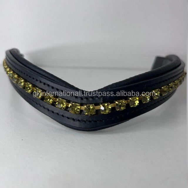 1 rangée de cristaux de diamant mega bling vert en forme de V incrustés, bande de sourcils de cheval en cuir de toutes tailles