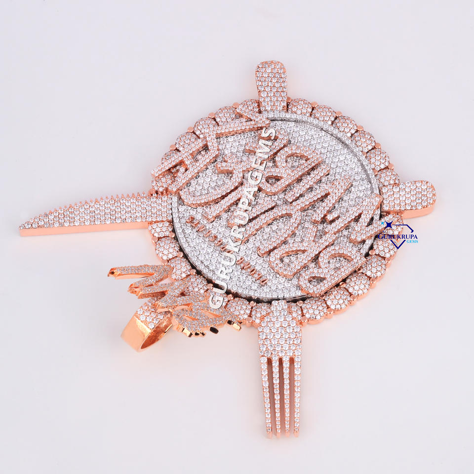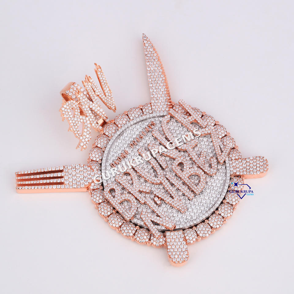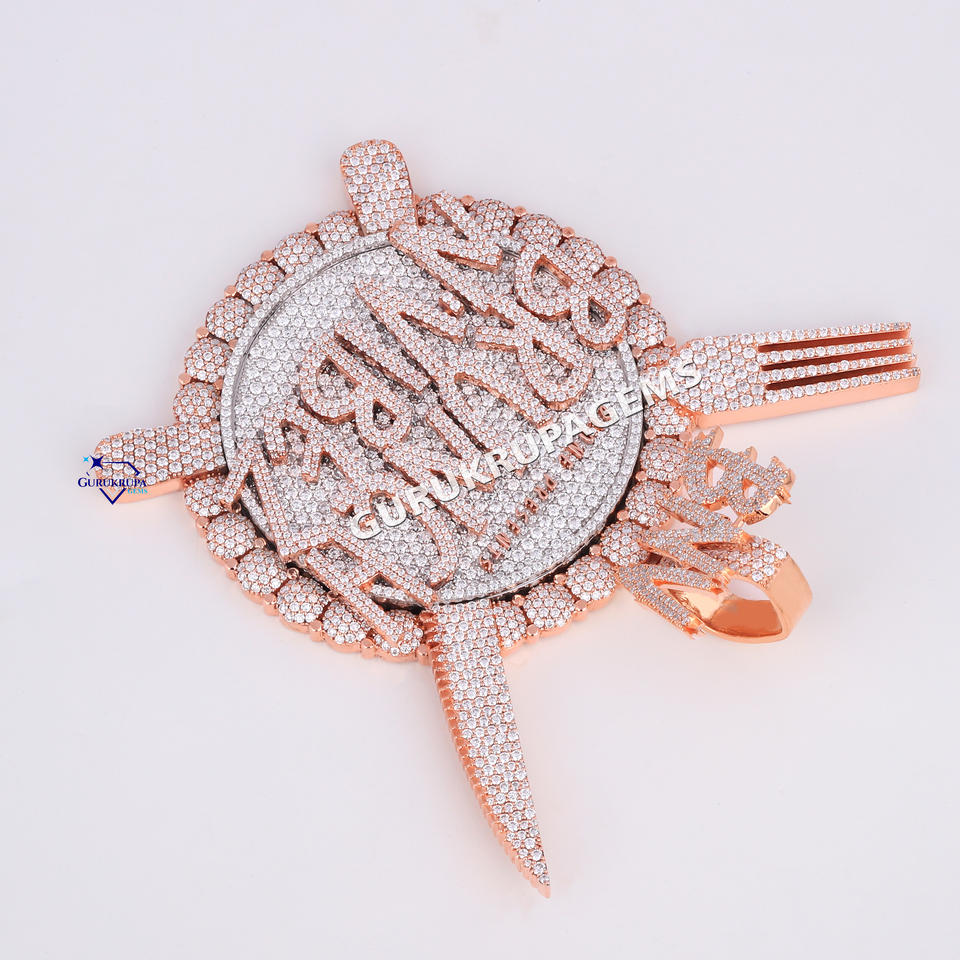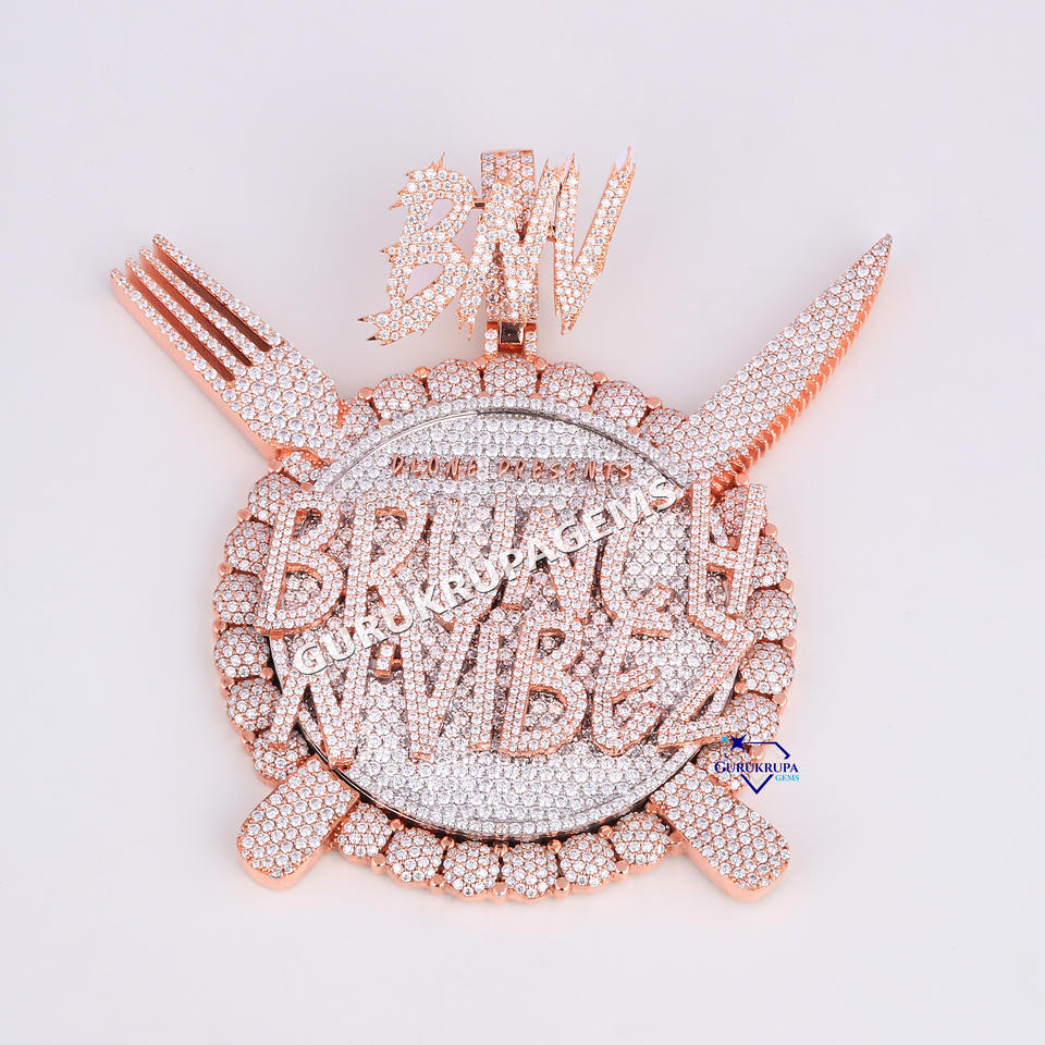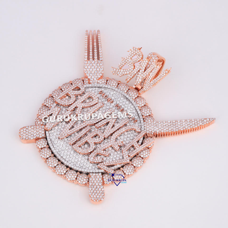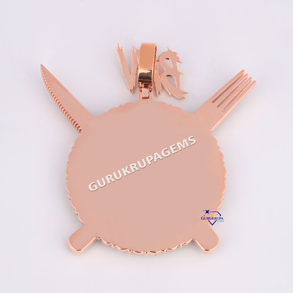 Pendentif brunch personnalisé en or rose 14KT taille ronde en diamant cultivé en laboratoire avec des accents de fourchette et de couteau Bijoux glacés parfaits