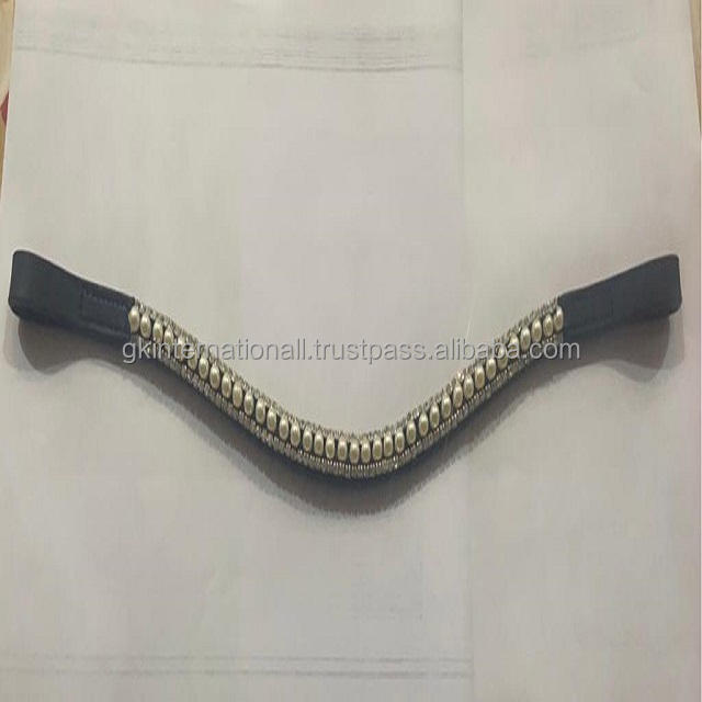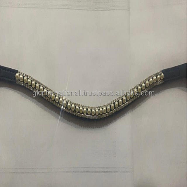 Personnalisé 3 rangées de perles blanches et de cristaux Diamante Bling Rhinestones Wave Shape Black Leather Horse Brow Band at Wholesale
