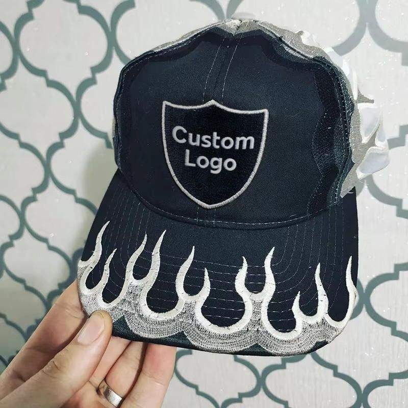 Casquettes de baseball ajustées personnalisées pour hommes avec broderie 3D en relief, casquettes de sport d'extérieur, casquettes snapback avec logo flamme et feu