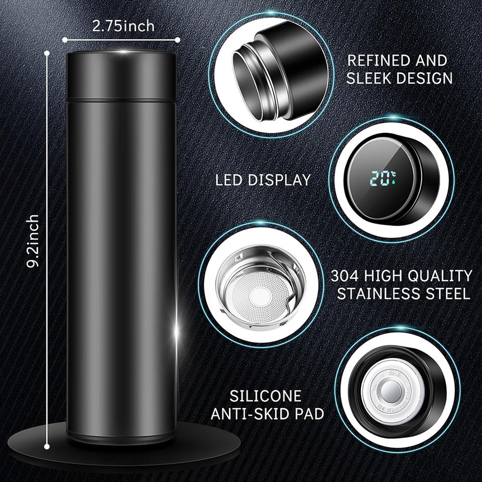 Nom du produit:Tasse intelligente avec écran tactile en acier inoxydable et thermomètre intégré.