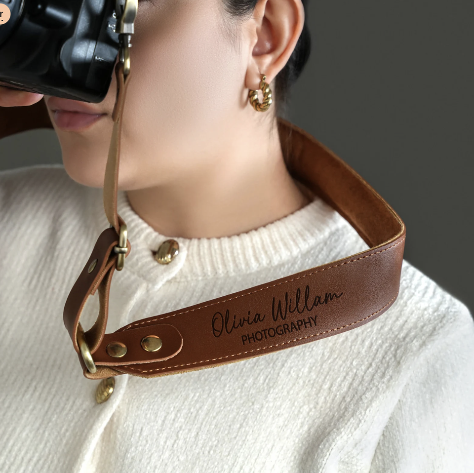Sangle d'appareil photo réglable personnalisée en cuir, sangle d'appareil photo DSLR en cuir avec monogramme personnalisé, accessoires de voyage pour appareil photo