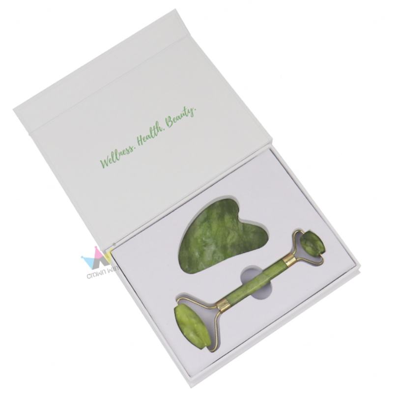 Boîte en papier rigide carrée personnalisée, biodégradable, écologique, de luxe, avec rouleau de jade magnétique et Gua Sha, inserts en éponge EVA