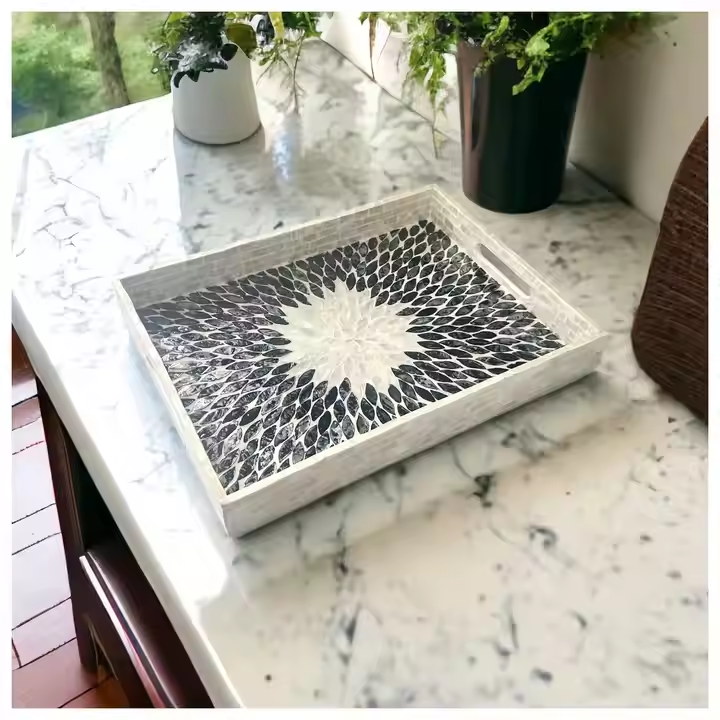Plateau personnalisé en incrustation d'os Plateau de service en nacre Plateau fait à la main pour la maison Cuisine Restaurant Stockage des aliments et utilisation décorative