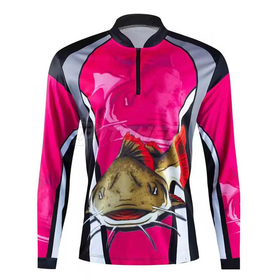 Chemise zippée de pêche respirante 100% polyester, tissu doux au toucher, coupe confortable, UPF 50, utilisation en extérieur