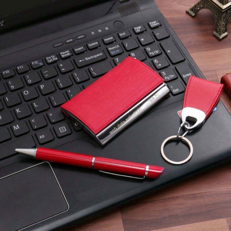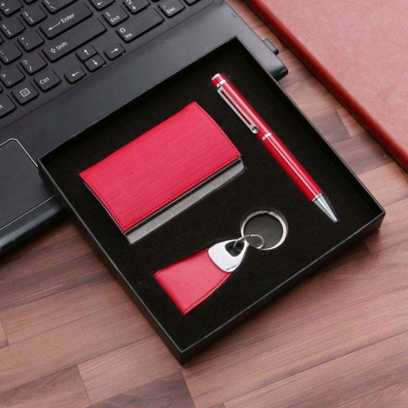 Ensemble cadeau d'affaires personnalisé : stylo en métal, porte-cartes et porte-clés - Cadeaux d'entreprise et articles promotionnels