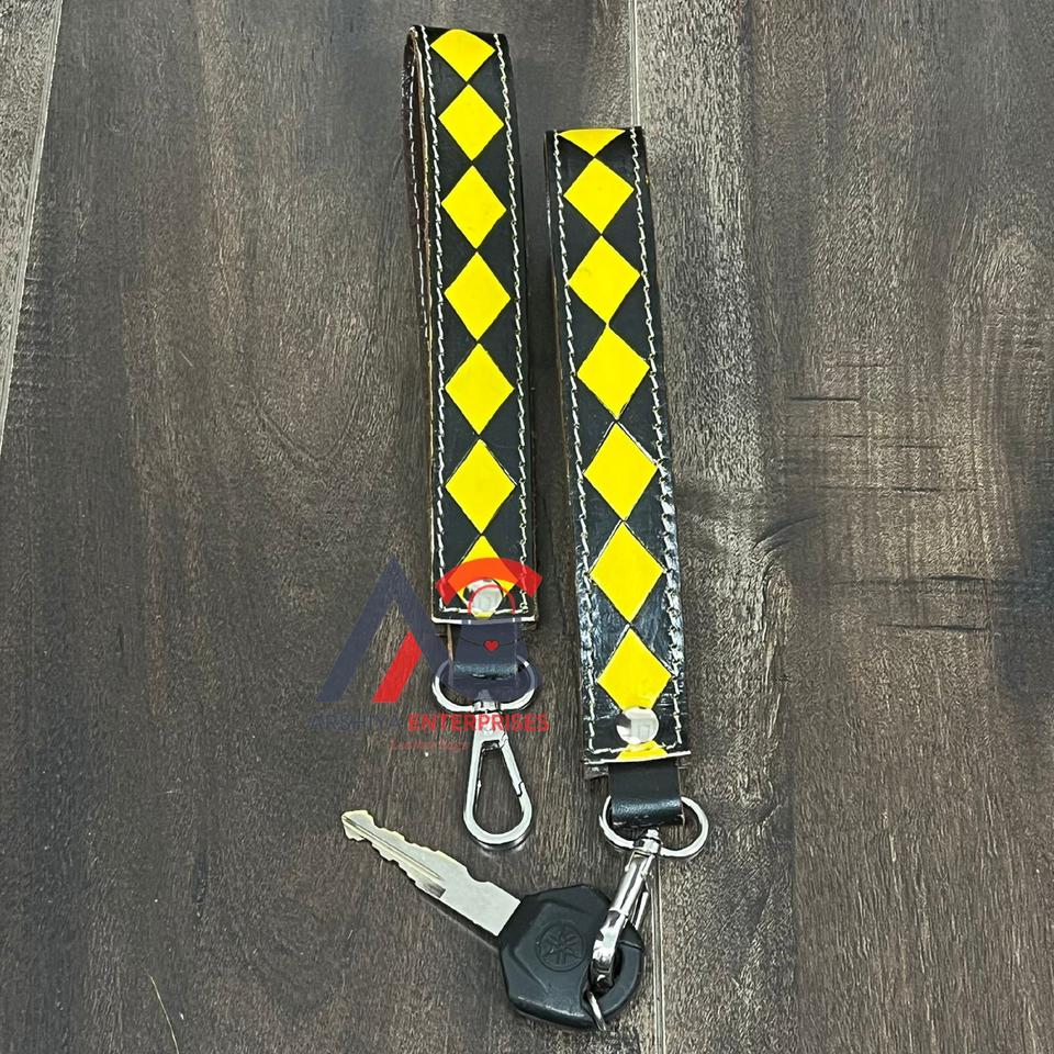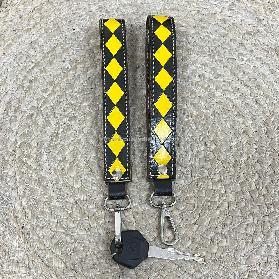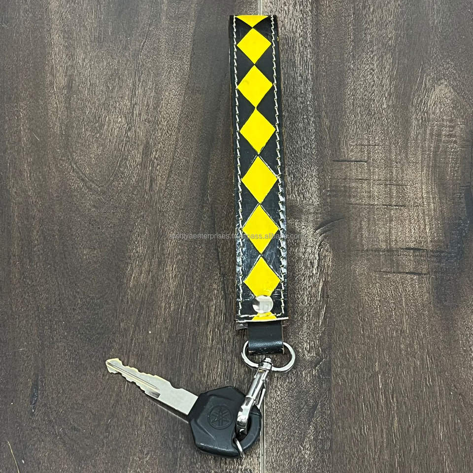 Nom du produit:Porte-clés bracelet en cuir à carreaux véritable