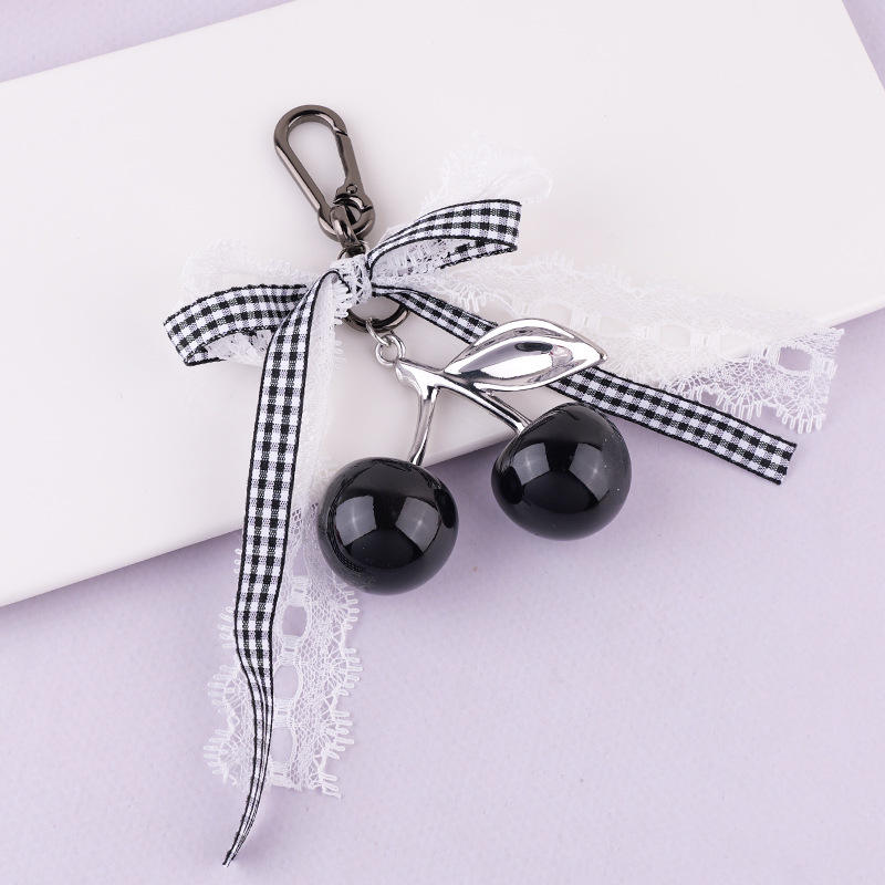 Porte-clés léger personnalisé en forme de cœur de cerise pour la fête des Mères, avec pendentif en dentelle florale et ruban, crochet en forme de cœur, en métal de style dessin animé