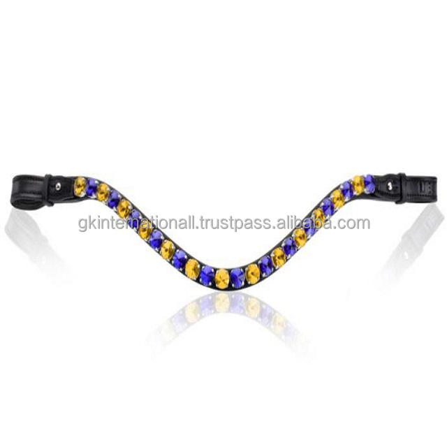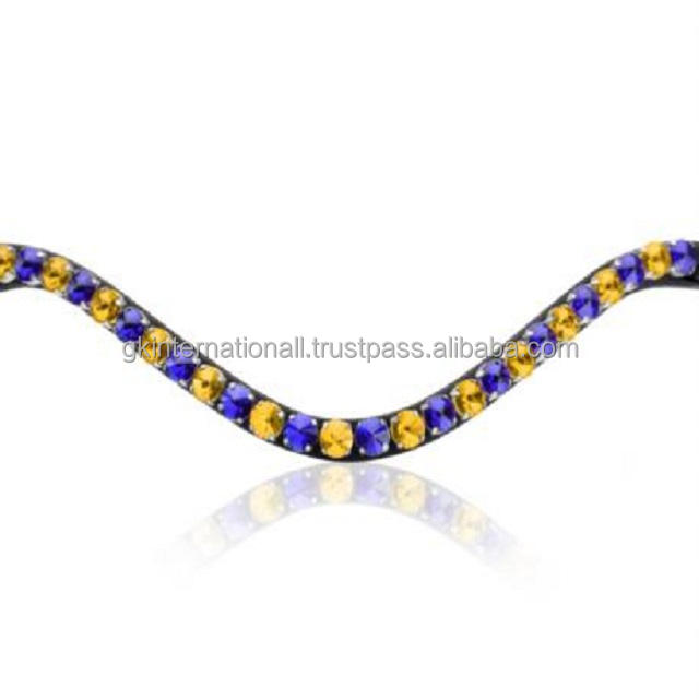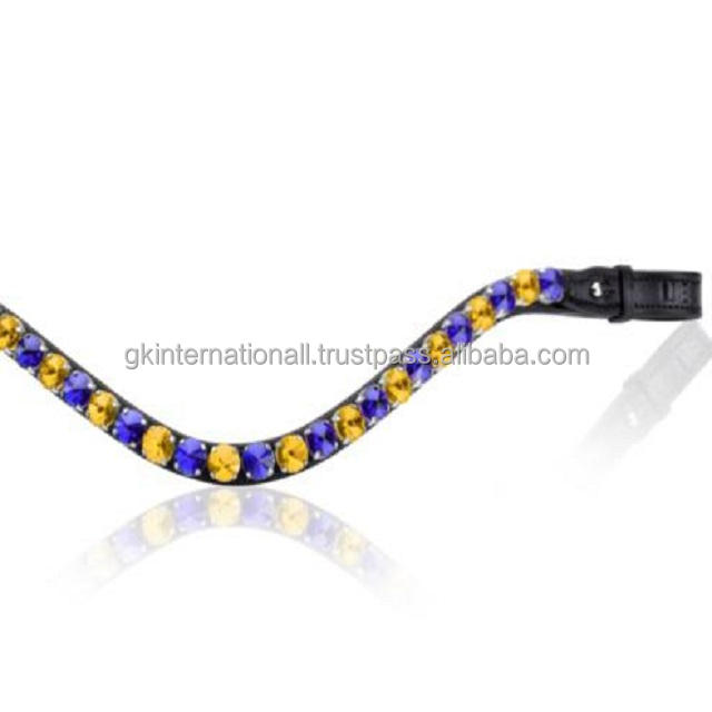 Rivoli coloré personnalisé cristaux ronds chaîne en métal méga bling vague profonde noir anglais cuir cheval front bande à bas prix