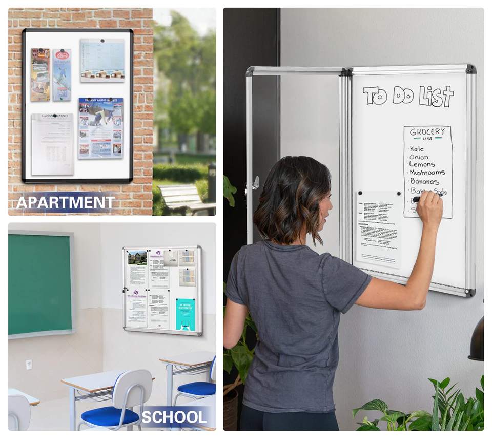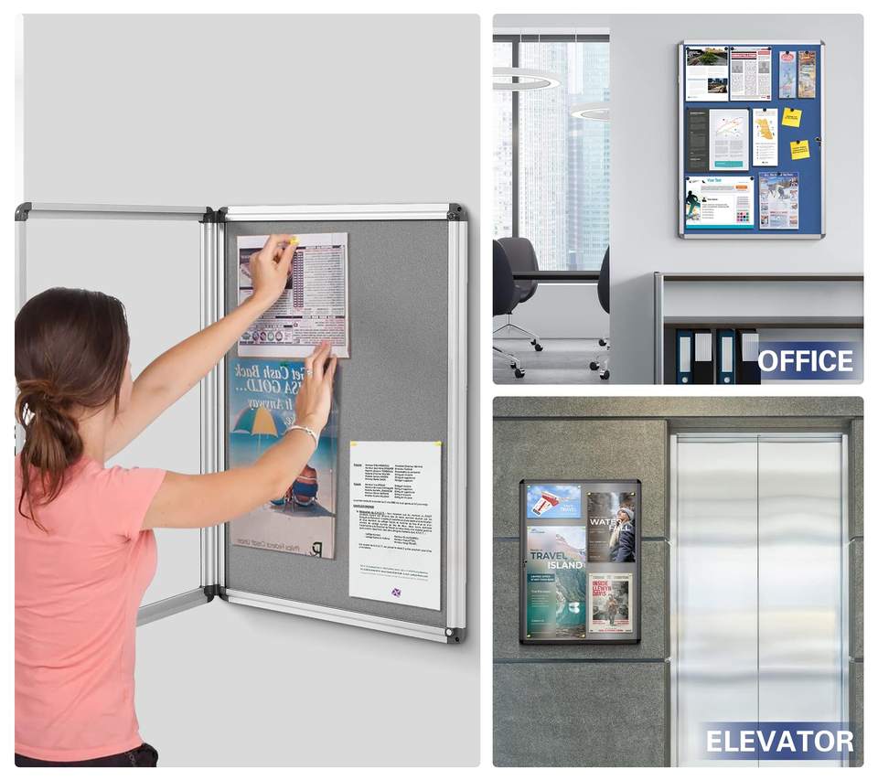 Tableau d'affichage en liège personnalisé Combinaison de tissus Présentation Transparent Vitrine Verrouillable Conception pour l'affichage des messages