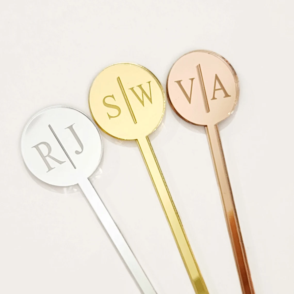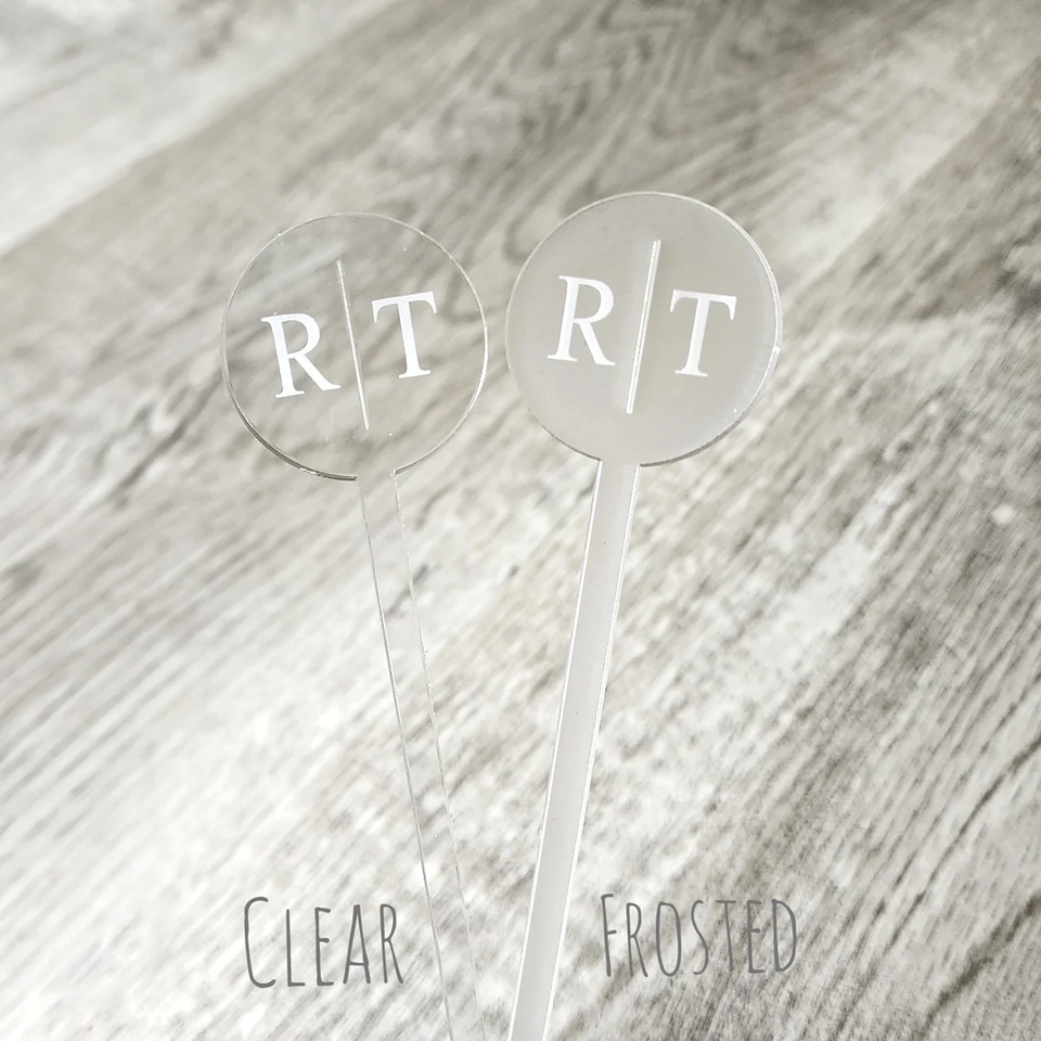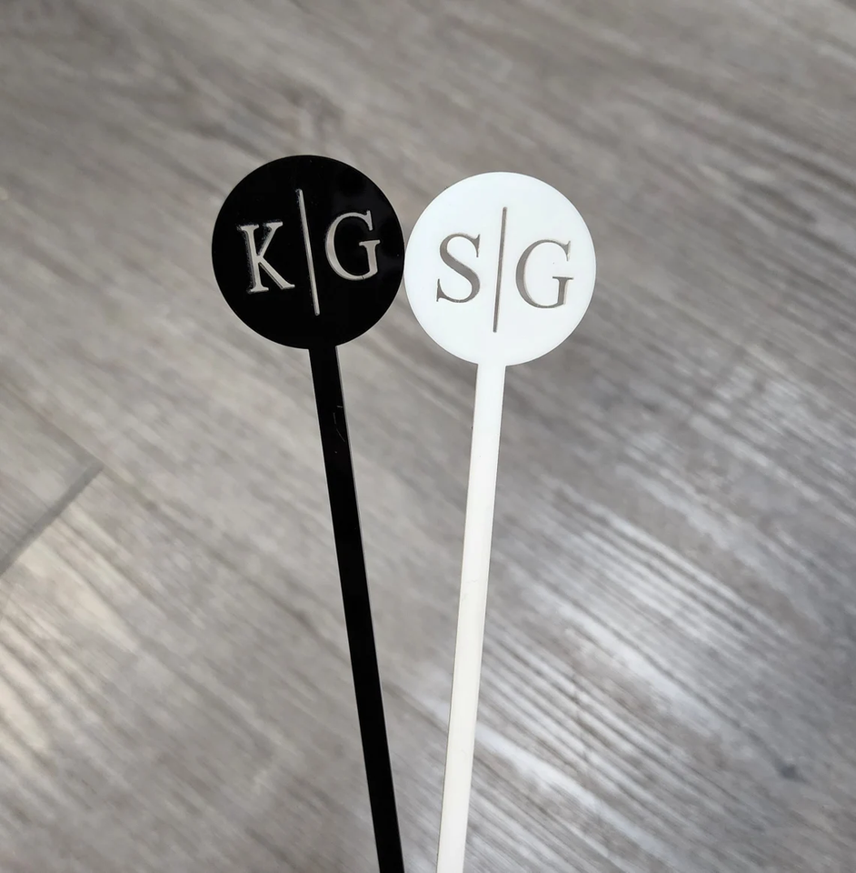 Étiquette nominative personnalisée en acrylique noir personnalisé Agitateurs de boissons de mariage Bâtonnets de cocktail Bâtonnets de cocktail initiaux