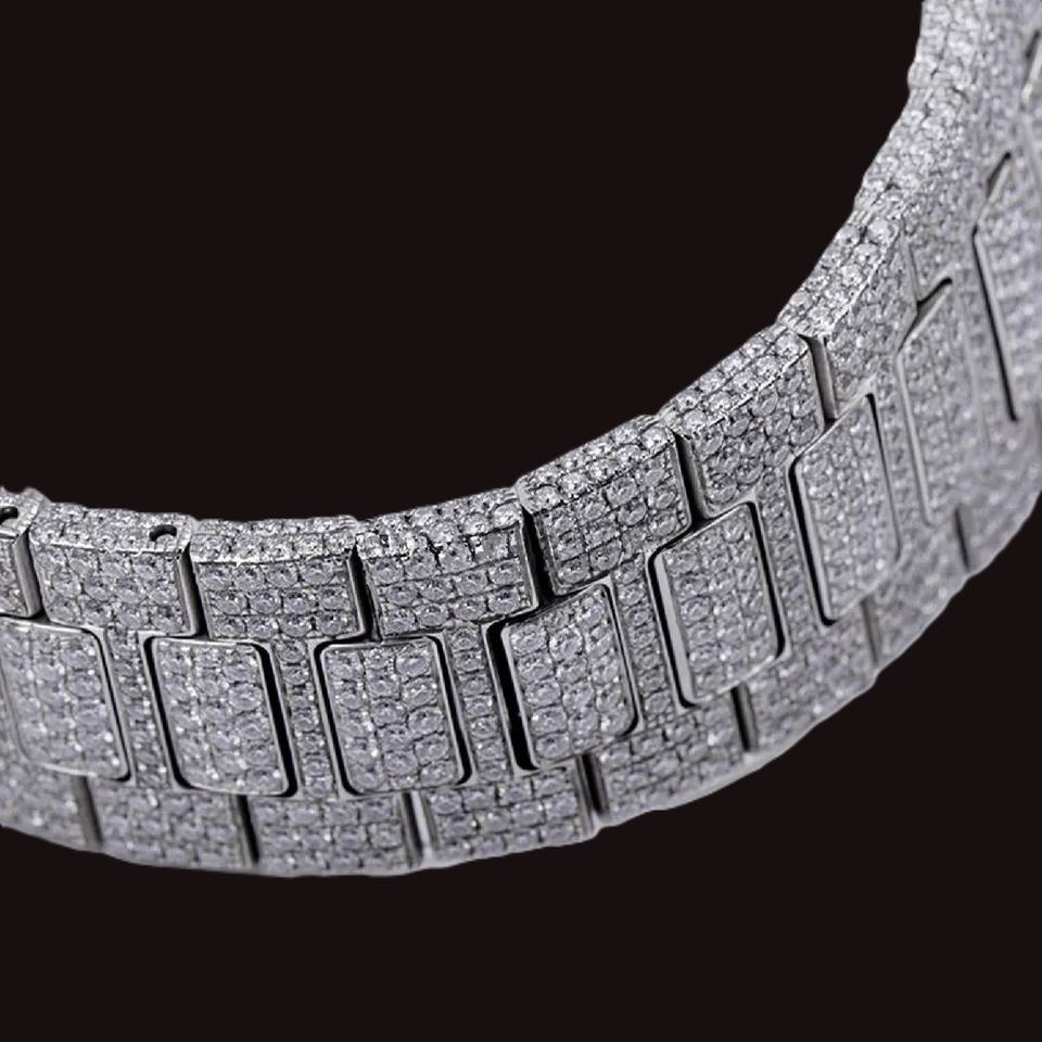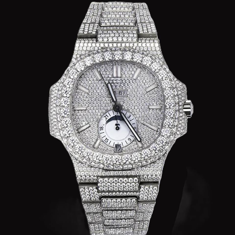 Montre personnalisée pour homme, cadran en verre blanc, mouvement à quartz, diamants en moissanite, style hip-hop, mécanique