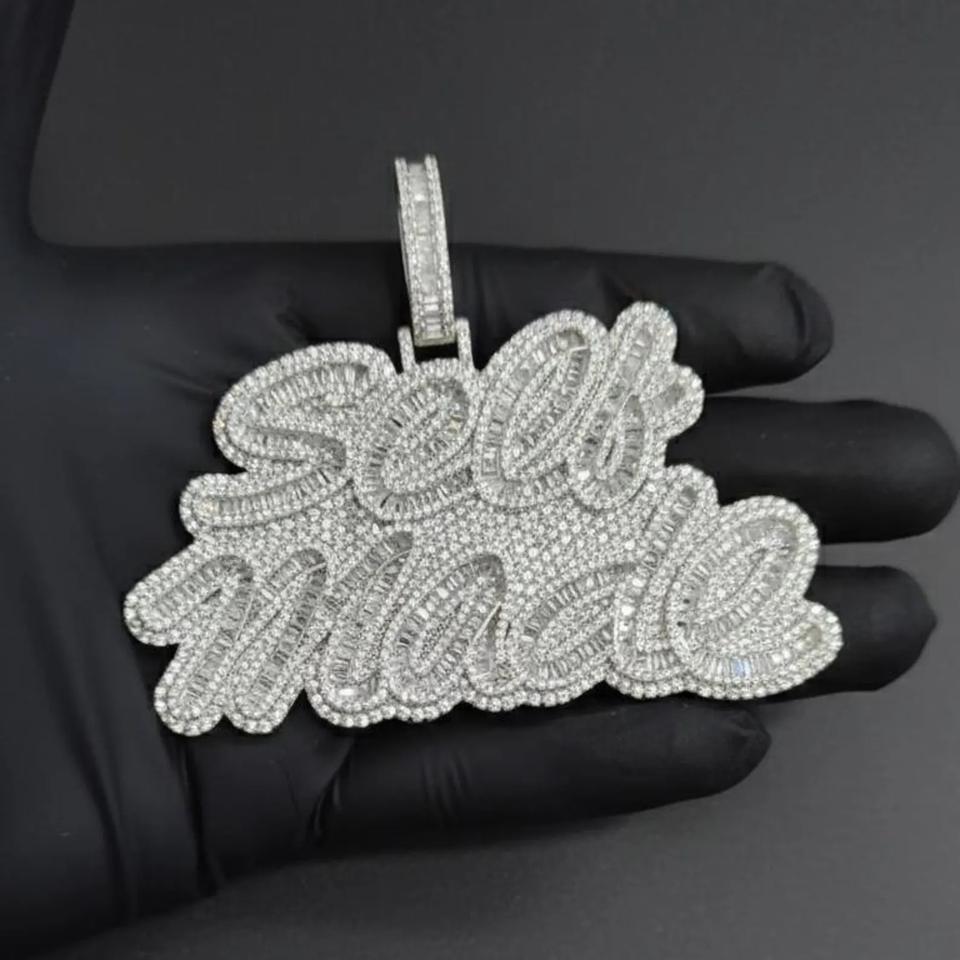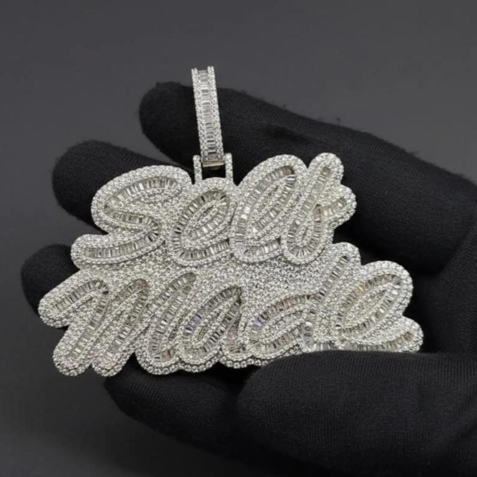 Pendentif Lettre Personnalisé Hip Hop en Argent Sterling 925 Certifié IGI avec Moissanite Taille Émeraude VVS, Testeur de Diamant Inclus, Unisexe